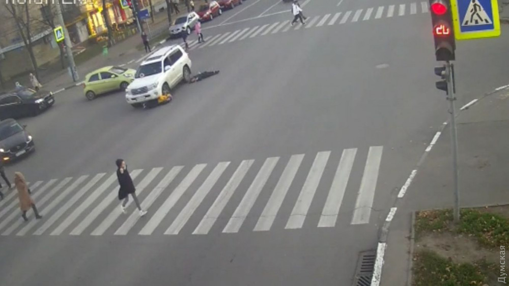 Судя по видео с места ДТП, которое появилось в сети, водитель внедорожника даже не пытался тормозить перед зеброй, по которой двигались люди, и ехал к тому же на красный.