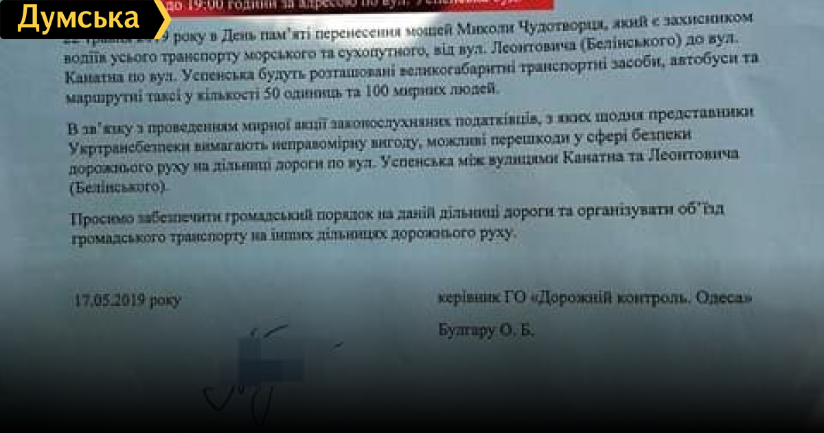 22 мая водители грузовых автомобилей и автобусов намерены блокировать движение транспорта по Успенской улице. Об этом говорится в уведомлении общественной организации «Дорожный контроль. Одесса», которое она направила в полицию.