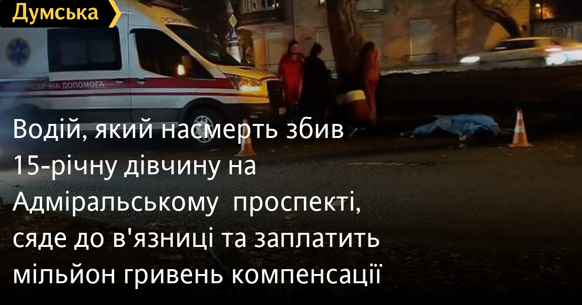 Водій, який насмерть збив 15-річну дівчину на Адміральському проспекті, сяде до в'язниці та заплатить мільйон гривень компенсаціїCуд виніс вирок водієві, який у листопаді минулого року збив брата та сестру на пішохідному переході, після чого втік і п'ять днів ховався від поліції у друзів. За рішенням суду він проведе у в'язниці вісім років із позбавленням права керування автомобілем терміном на три роки після звільнення. Крім того, потерпілому хлопцеві водій заплатить понад 7 тис. грн за матеріальну шкоду та 100 тис. грн за моральну шкоду. Матері загиблої дівчинки він заплатить понад 50 тис. грн за матеріальну шкоду та 1 млн. грн за моральну шкоду. Нагадаємо, аварія сталася 4 листопада минулого року на Адміральському проспекті. Водій автомобіля «Опель» здійснив наїзд на двох пішоходів, які перетинали дорогу «зеброю». 15-річна дівчина загинула на місці від закритої черепно-мозкової травми, а її 21-річного брата було доставлено до лікарні з тілесними ушкодженнями середньої тяжкості. З місця події водій втік, а його машину невдовзі знайшли у дворах Луніна. Злочинця знайшли лише через п'ять днів – увесь цей час він ховався у друзів. Ним виявився 28-річний уродженець Подільська на Одещині. На судовому засіданні обвинувачений свою провину визнав, сказавши, що після ДТП він пригальмував, але потім злякався і вирішив втекти з місця події. СМЕРТЬ РОСІЙСЬКИМ ОКУПАНТАМ! Помітили помилку? Виділяйте слова з помилкою та натискайте control-enter |
