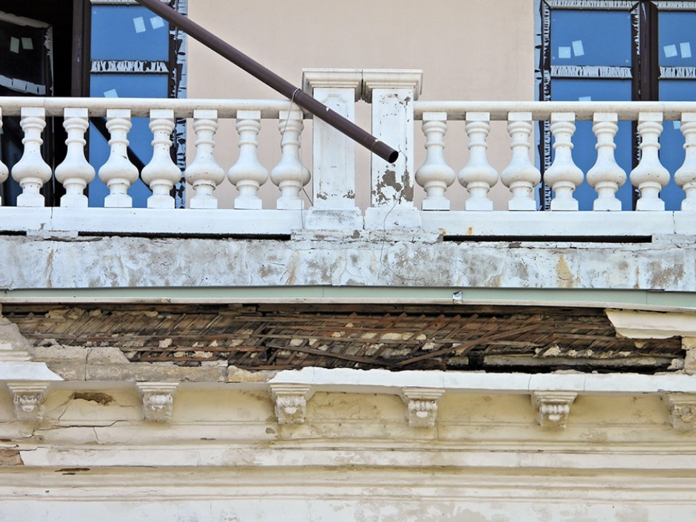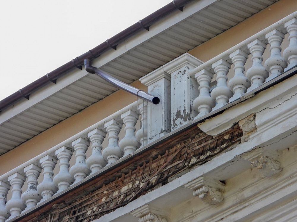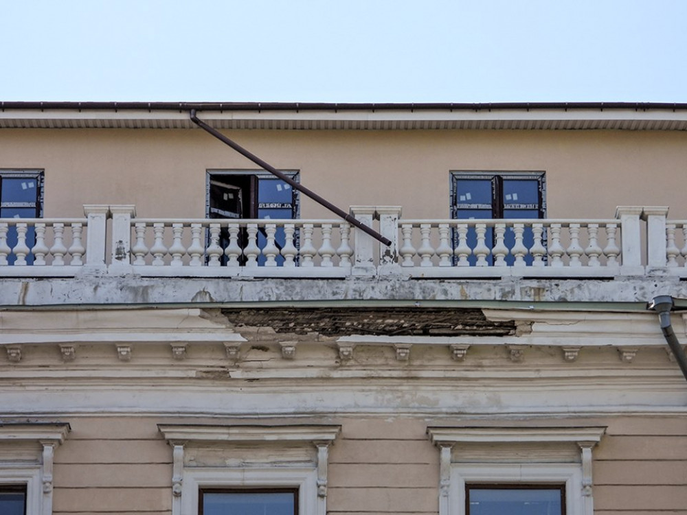 Рассыпалась часть фасада памятника архитектуры национального значения — дома Потоцкого на Приморском бульваре. Одесситы заметили, что как раз на разрушающейся карниз во время дождей льется вода с крыши мансарды Шмуклера.