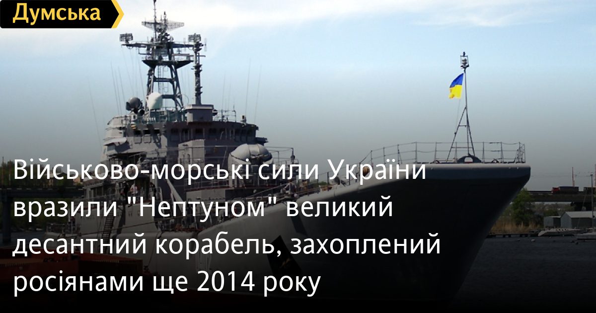 Великий десантний корабель ВМС України «Костянтин Ольшанський», захоплений російськими окупантами ще 2014 року, вразили Сили оборони, використавши протикорабельну ракету «Нептун».