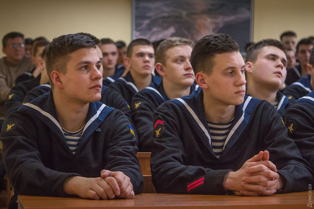 Четыре года назад наша страна переживала, пожалуй, самые трудные дни своей новейшей истории. Оккупанты в Крыму захватывали государственные учреждения, окружали воинские части, топили собственные корабли, чтобы заблокировать украинские в Донузлаве. Тогда настоящий пример мужества показали курсанты военно-морской академии и учащиеся военно-морского лицея. 21 марта, когда над академией поднимали российский триколор, курсанты фактически под дулами автоматов российского спецназа запели украинский гимн и покинули плац под развернутыми украинскими флагами. Лицеисты, то есть, по сути, школьники, которые даже не давали присяги, остались верными своей стране и отказались продолжать учебу под оккупацией. Несмотря на сладкие обещания и угрозы, отказались переходить на сторону России и кадровые военные — преподаватели лицея.