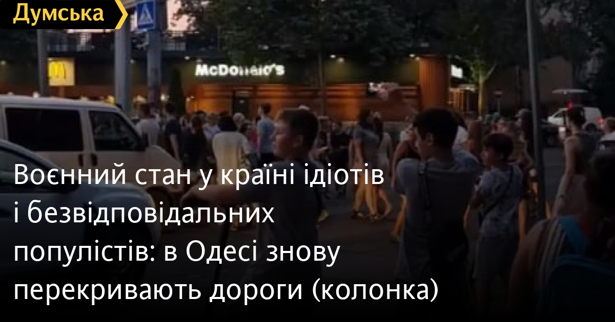 Божевільна, божевільна Одеса! Місто, яке так швидко втомилося від війни за відсутності реальної загрози — рідкісні прильоти з жертвами сприймаються як чергові ДТП, — що терміново й посилено, я б навіть сказав навмисно, стало жити мирним життям. І ось уже «активні» громадяни перекривають вулиці, бо, бачте, у них немає світла. Справді, чому його, противного, немає? Адже має бути! Мабуть, Зеленський вкрав і перепродав до Угорщини. Або Румунії. Ну або Порошенко витратив на виробництво шоколадок. Не суть.