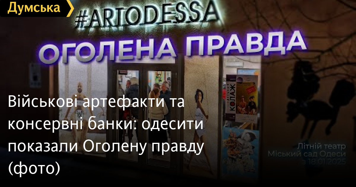 Військові артефакти та консервні банки: одесити показали «Оголену правду»Виставка колажу «Оголена правда» відкрилася в галереї ArtOdessa в Міському саду. Традиційно раз на рік одеські художники показують, що вони вміють створювати з різних предметів, досягаючи самої суті. Цього разу кількість учасників сягає п'ятдесяти, серед них є студенти та викладачі одеських мистецьких вишів. Галина Безверхня заклеїла найцікавіші місця оголених постатей чоловіка й жінки, назвавши свої роботи Tell Rembrandt about rules of Meta на посміх над цензурними заборонами відомої соцмережі. Ольга Погрібна на живописний морський пейзаж наклеїла уламки снарядів, вийшов колаж «З росії з нелюбов’ю». Григорій Вовк використав порожні консервні банки, а вирізок з газет і журналів не порахувати. «Синіх духів» з тканини закликала Тамара Белоглазова, Світлана Василенко взагалі взяла за основу своєї роботи валізу. Тут є філософські колажі Юрія Письмака («Джерело та океан») і Лади Шакалової («Шлях»), пустотливий «Космос» Євгенія Запоточного, складновигаданий «Шлюб» Марії Павлюк і провокативний Red Єлизавети Книги. «Колаж як форма мистецтва надає великі можливості для творчого самовираження, — зазначає директор галереї Катерина Піменова. — Художники використовують різні ідеї та матеріали, комбінуючи їх у несподівані та захоплюючі композиції. Завдяки цьому кожен твір спонукає глядачів до роздумів і емоційних переживань. Виставка «Оголена правда» є чудовою можливістю зануритися в світ колажу, побачити різні стилі та підходи, а також оцінити креативність та майстерність учасників. Цей захід підкреслює важливість експериментів у мистецтві та відкриває нові горизонти для сприйняття сучасного художнього процесу».