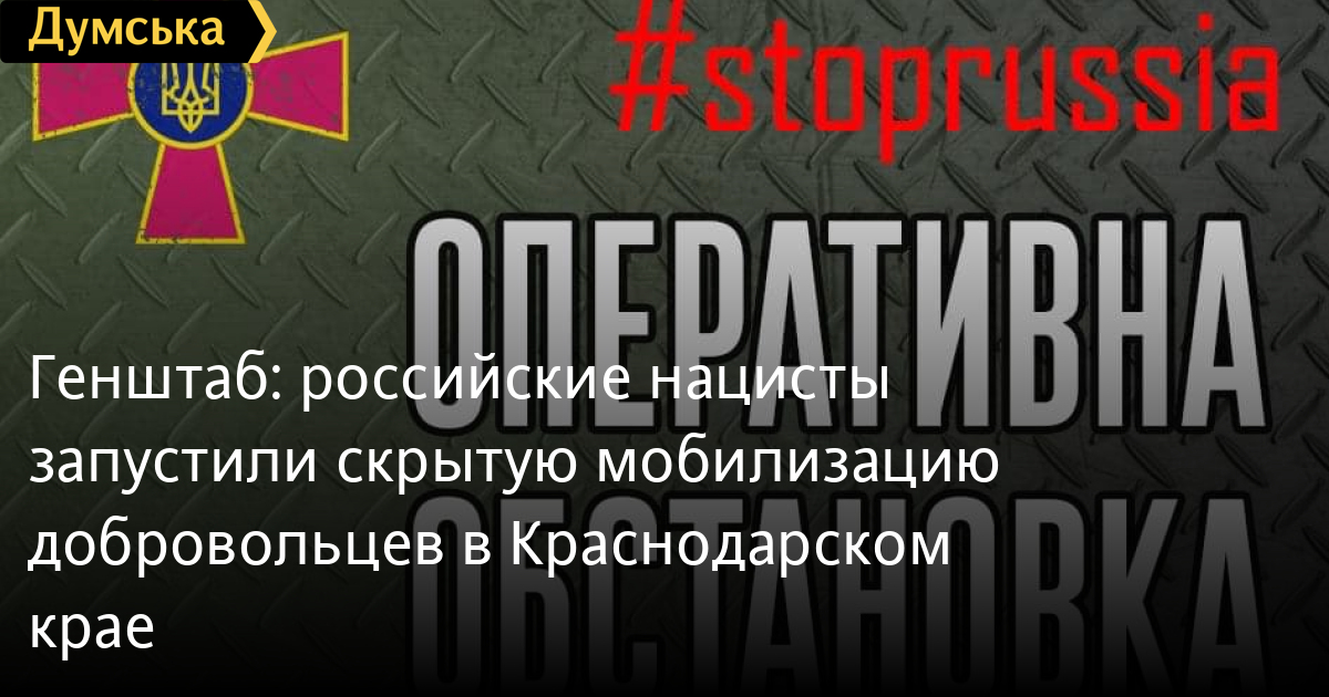 В связи со значительными потерями живой силы российские нацисты запустили в Краснодарском крае скрытую мобилизацию для привлечения добровольцев.