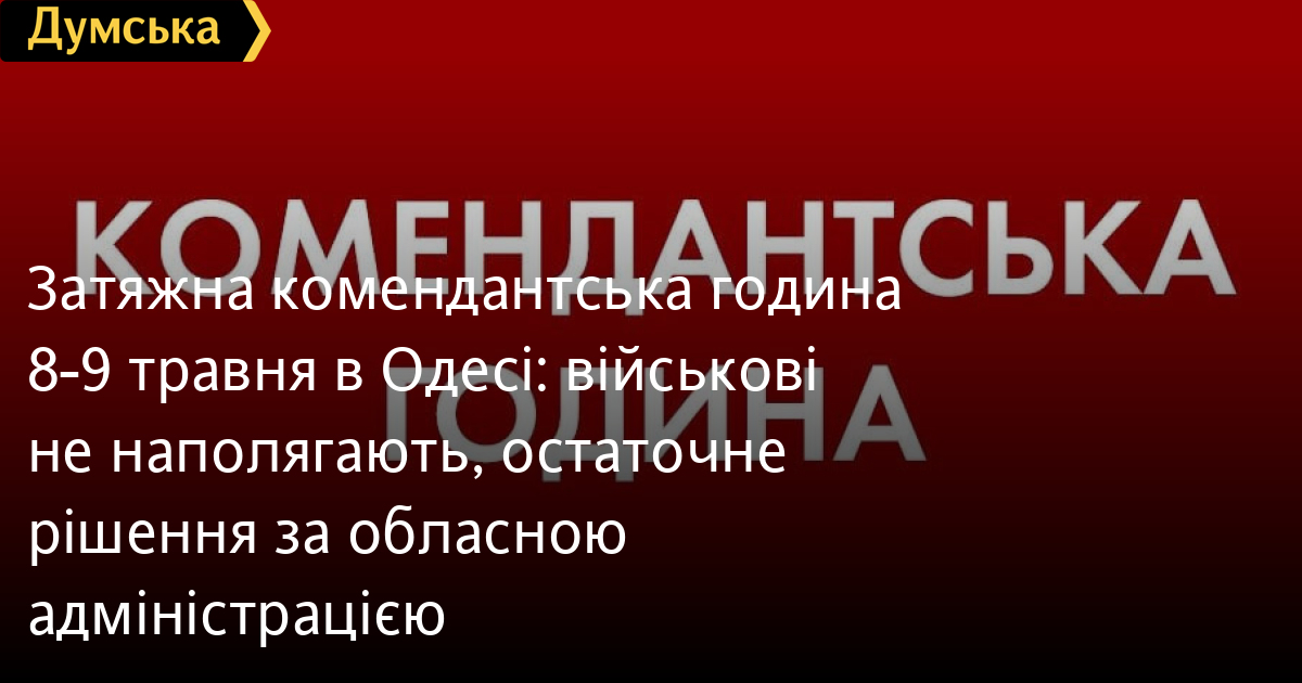 Нагадаємо, торік довга комендантська година діяла з 22:00 8 травня до 05:00 10 травня. У регіоні не працювали залізничний вокзал Одеси, автостанції та автовокзали, ринки, кафе, ресторани, ТРЦ. Жителям регіону заборонили відвідувати парки відпочинку, спортивні заклади, магазини та АЗС.