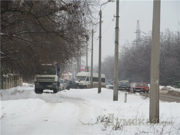 На место происшествия вызвали сотрудников ГАИ. Здесь уже образовалась внушительная пробка — автомобилисты пытаются объехать перекрытый участок по дорожке для пешеходов, которая, впрочем, тоже не очищена от снега.