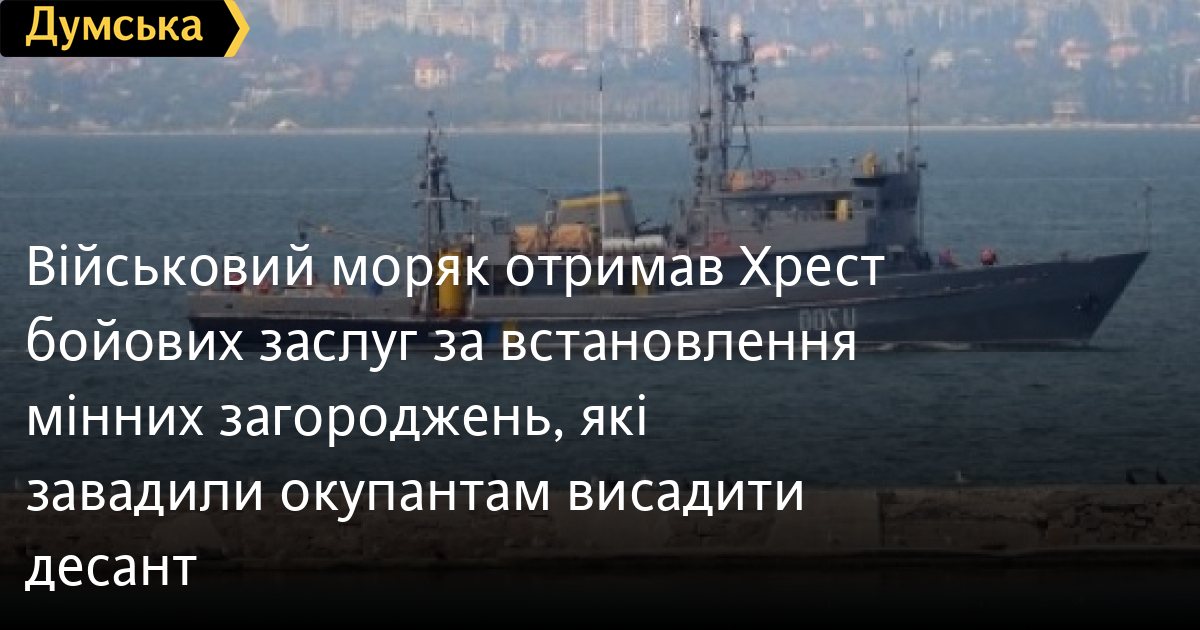 Хрест бойових заслуг з рук Президента України, Верховного головнокомандувача Збройних сил України Володимира Зеленського отримав командир морського водолазного судна «Нетішин» Військово-морських сил штаб-старшина Микола Соколовський.