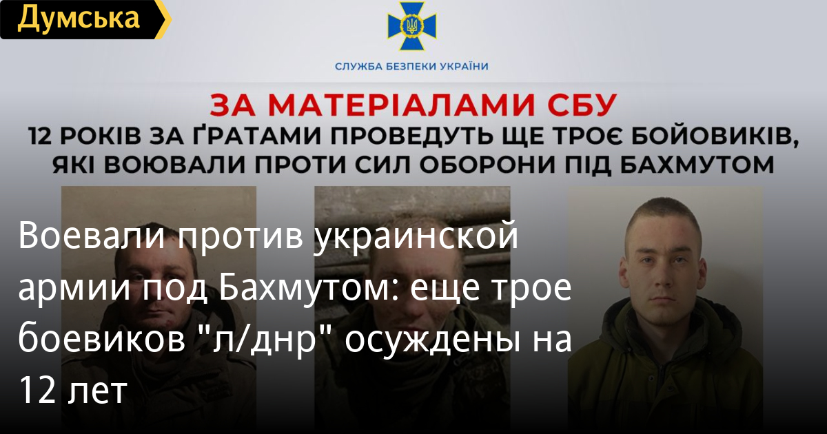Воевали против украинской армии под Бахмутом: еще трое боевиков «л/днр» осуждены на 12 летЕще трое боевиков, которые воевали против Сил обороны под Бахмутом, проведут 12 лет за решеткой. Об этом сообщает пресс-служба СБУ. Установлено, что после начала полномасштабного вторжения они вошли в состав оккупационных группировок Южного военного округа вс рф. «В рядах агрессора фигуранты участвовали в штурме украинских городов на востоке нашей страны. Украинские защитники взяли злоумышленников в плен во время боевых столкновений в районах Бахмута и Авдеевки», — говорится в сообщении. Суд назначил боевикам по 12 лет тюрьмы. Одним из осужденных является наводчик-оператор танка «3-й отдельной мотострелковой бригады «Беркут» с позывным Светляк. Он участвовал в боевых действиях против Сил обороны в Донецкой области и обстреливал местные жилые кварталы и энергообъекты. В феврале нынешнего года его подразделение перебросили под Новобахмутовку. Впрочем, в начале наступательных действий часть вражеской группы была уничтожена украинскими защитниками, а сам боевик попал в плен. Кроме того, реальный срок заключения получил стрелок, который еще в 2016 году воевал против сил АТО в составе «народной милиции лнр». После 24 февраля прошлого года он обстреливал населенные пункты на восточном фронте, а в декабре ˗ был захвачен в плен недалеко от поселка Спирное Бахмутского района. Еще один осужденный в мае 2014 года добровольно присоединился к созданному агрессором «министерству обороны днр». После начала полномасштабного вторжения он участвовал в штурме Верхнеторецка. Суд признал боевиков виновными по четырем статьям Уголовного кодекса Украины: ч. 2 ст. 110 (посягательство на территориальную целостность и неприкосновенность Украины); ч. 1 ст. 111 (государственная измена); ч. 2 ст. 260 (участие в не предусмотренных законом военизированных или вооруженных формированиях); ч. 1 ст. 258-3 (участие в террористической группе или террористической организации). СМЕРТЬ РОССИЙСКИМ ОККУПАНТАМ! Заметили ошибку? Выделяйте слова с ошибкой и нажимайте control-enter |