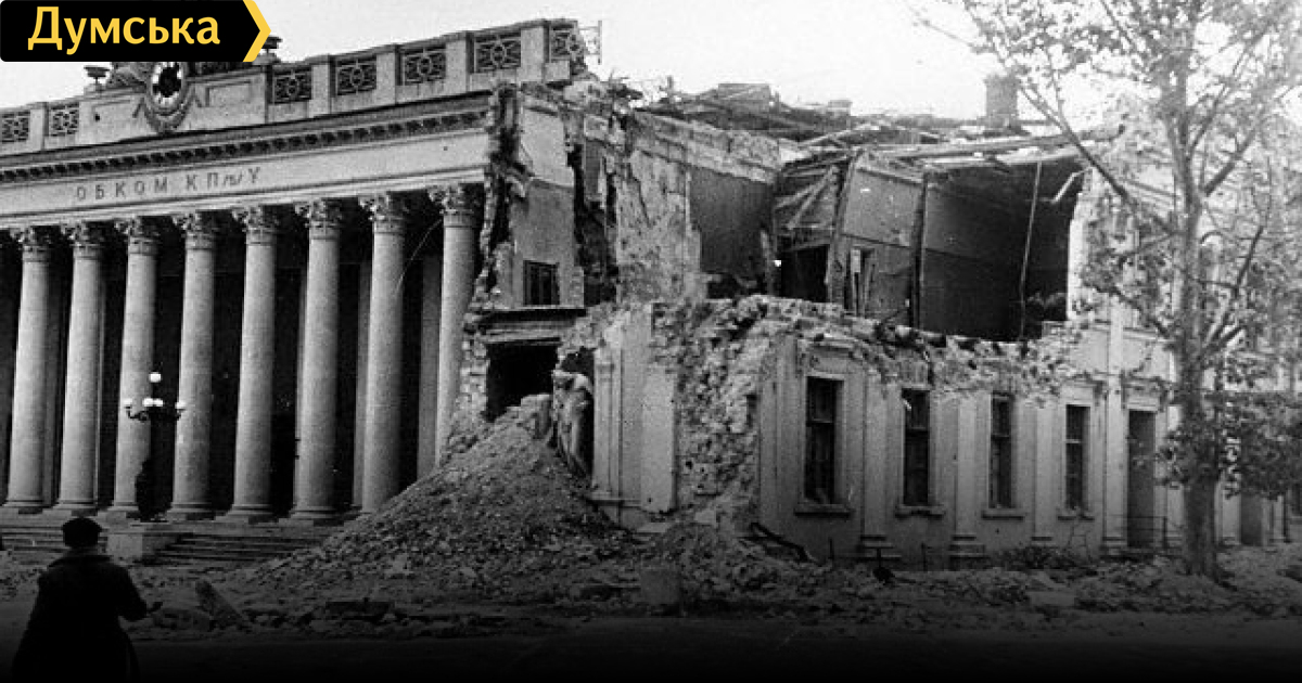 Советская контрразведка раздобыла документы по расположению румынских штабов в оккупированной Одессе ещё задолго до оккупации. В 75 году я закладывал капсулу в здание Энгельса 40/42 с посланием потомкам, письмо которое гласило «В 2000 году население СССР будет жить при коммунизме». Так, что я историю со взрывом этого здания знаю хорошо. Заминировано было два здания на Энгельса 40/42 и ещё какое-то здание, точное расположение не вспомню. Во время совещания румынского штаба из Севастополя был передан сигнал морзе, после чего произошел взрыв в подвале здания несколько тонн взрывчатки. Румыну отыгрались, немцев не было в то время, они на Александровском проспекте на деревья накидали доски и вешали всех одесситов которые попадались под руку. Молодцов Бадаев увидел репрессии румынов и отказался от взрыва второго радио управляемого фугаса. При этом спас тысячу одесситов. А так во время румынской оккупации было все спокойно, магазины, школы работали и даже одесский оперный театр. Это было все до 1 апреля 1944 года, а затем зашли немцы и за несколько дней расстреляли большей людей, чем румыны за весь период оккупации.