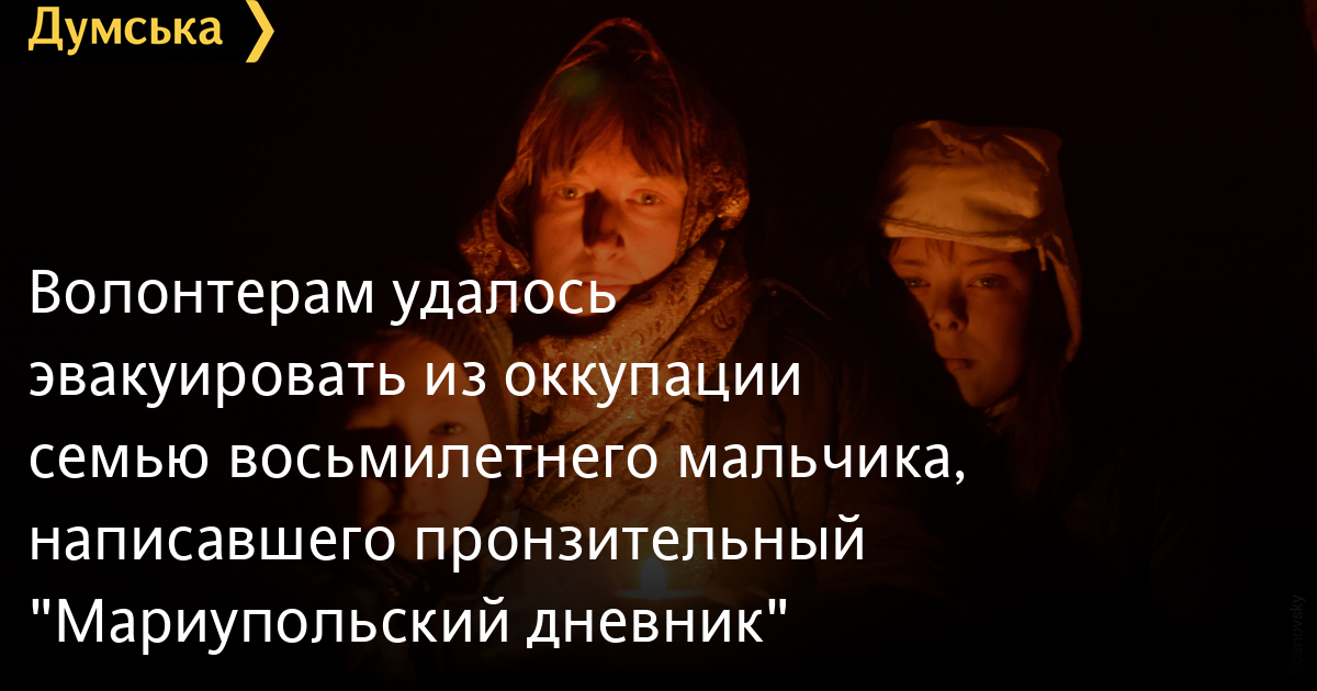 Волонтерам удалось эвакуировать из оккупации семью восьмилетнего мальчика, написавшего пронзительный «Мариупольский дневник»Семью из четырех человек, в которой самый младший мальчик Егор писал дневник во время бомбардировок российских нацистов, удалось эвакуировать из оккупированного Мариуполя. Об этом сообщил волонтер и фотограф Евгений Сосновский, которому самому посчастливилось выбраться из пылающего города 3 мая. Добравшись до Запорожья, Евгений написал пост на своей страничке в Фейсбук о семье Кравцовых, в которой восьмилетний мальчик Егор пишет «Мариупольский дневник». Вся Украина переживала страдания людей в окруженном российскими нацистами, а потом оккупированном городе и следила за эвакуацией. Сосновский фотографировал все время обстрелов и бомбардировок и потом рассказал о них изданию «Нова Польша», опубликовав щемящие сердце фото родного города и погибших людей в период с 24 февраля по 30 апреля. И вот только вчера волонтеры сумели вывезти оставшихся в живых, но раненых Кравцовых: маму, бабушку, самого Егора и его сестру. «Они это сделали! Тот самый мальчик, который написал свой «Мариупольский дневник» и его семья на 100-й день войны смогли выехать из оккупированного Мариуполя! Двое раненых детей, их раненая мать и бабушка уже находятся в безопасности и сейчас находятся в Запорожье! И я уверен, что теперь у них все будет хорошо», — написал Евгений Сосновский. Вместе со свидетельствами взрослых дневник Егора Кравцова, в котором он пишет о смерти дедушки, своих двух собак и соседей по подвалу, в котором люди переживали бомбежки, станет доказательством преступлений российских нацистов в Международном суде. Сейчас эвакуированных ждет лечение и реабилитация. Выжившие мариупольцы, сумевшие выехать из города на территорию Украины, создали сообщество и хаб «ЯМариуполь» и активно помогают горожанам, как сумевшим выбраться из пекла, так и оставшимся в оккупации. Фото Евгения Сосновского СМЕРТЬ РОССИЙСКИМ ОККУПАНТАМ! Заметили ошибку? Выделяйте слова с ошибкой и нажимайте control-enter |