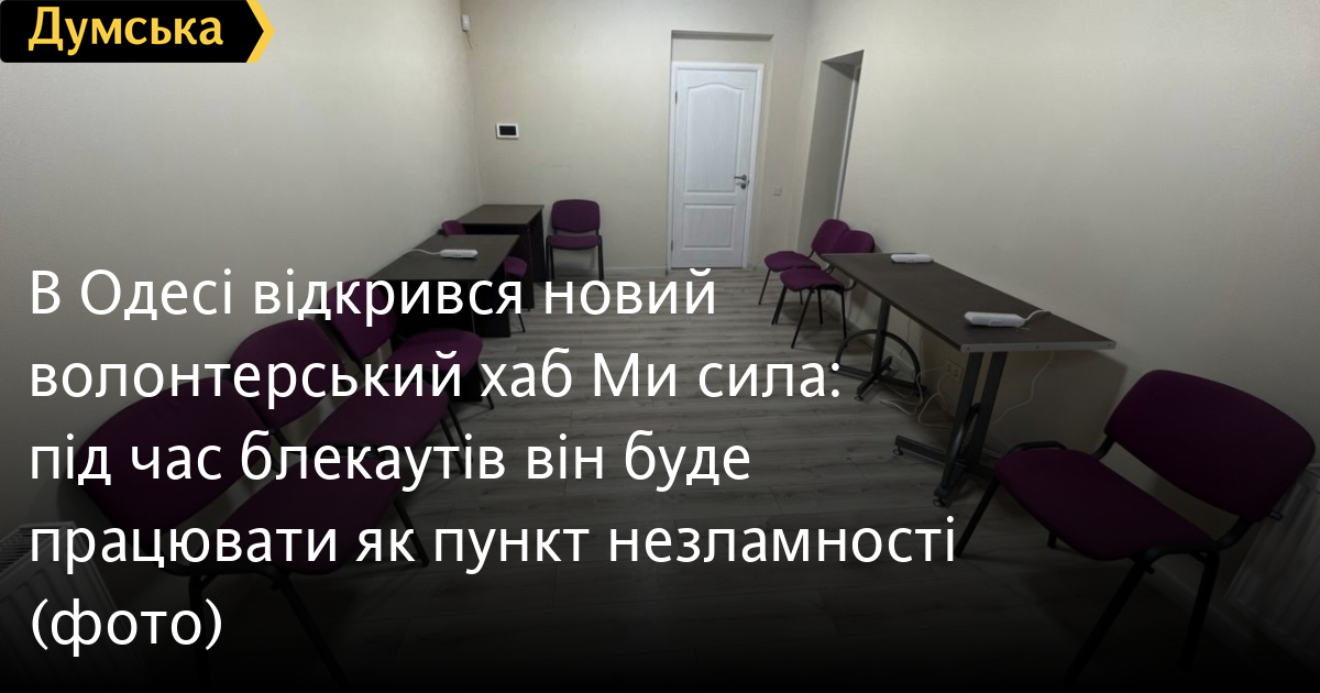 Волонтерський хаб «Ми сила», який під час блекаутів буде працювати як пункт незламності, відкрився в Одесі на проспекті Гагаріна.