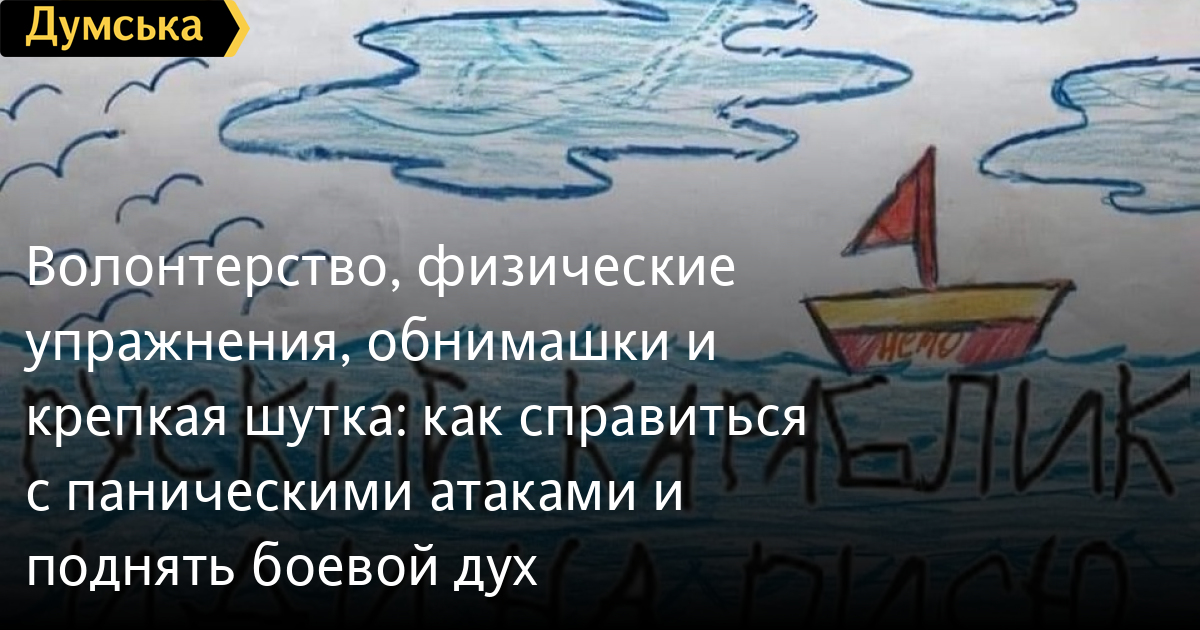 Волонтерство, физические упражнения, обнимашки и крепкая шутка: как справиться с паническими атаками и поднять боевой духВойна — страшное время. Кроме физической смерти и увечий, военные действия наносят тяжелейшие психологические травмы. Даже те, кто сейчас далеко от взрывов, находятся в зоне риска, что уж говорить о тех наших земляках, кто вынужден часами прятаться в бомбоубежищах, обнимая членов своей семьи и молясь, чтобы «братская» помощь российских нацистов не прилетела на их улицу. Министерство здравоохранения Украины опубликовало полезную информацию о том, как пережить кризис и сохранить спокойствие. По словам экспертов, чтобы быть готовым преодолеть любой кризис самостоятельно, а также уметь оказать психологическую поддержку другим, необходимо руководствоваться следующими правилами: - будьте рядом с человеком, нуждающимся в помощи. Оставаясь рядом, вы можете помочь восстановить чувство уверенности и безопасности; - активно слушайте. Важно внимательно выслушать человека, чтобы помочь ему пережить травмирующее событие; - уважайте и признайте чувства человека; - выявите заботу и окажите практическую помощь. К примеру, полезно будет связаться с кем-то, кто может побыть с пострадавшим. Во время кризисной ситуации человек может чувствовать или переживать страх, ступор, плач, истерику, паническую атаку, нервную дрожь, агрессию. Для каждого из этих состояний разработана собственная система действий, которые помогут пережить этот период. Как уже писал наш главный редактор, благодаря соцсетям и огромному потоку противоречивой, пугающей информации почти все население нашей страны испытывает стресс, сопоставимый с тем, который прямо сейчас бьет по психике солдат на передовой. Психологи отмечают несколько состояний, вызванных влиянием продолжительного стресса. Эйфория и праведная злоба сменяется истощением, тревогой и апатией. Мозг вынужден защищаться от эмоционального прилива. Чтобы избавиться от этих симптомов, психологи рекомендуют несколько действий: - Обязательно спать. Если необходимо, то принимать для этого успокоительное. - Не забывать пить воду, так обезвоженный организм не может бороться со стрессом. - Установить себе график пользования соцсетями и делать паузы от чтения новостей; - Не забывайте про физический контакт с родными и близкими. Обнимашки творят чудеса! Еще один хороший способ борьбы с постоянным эмоциональным напряжением – это что-то делать. Подключайтесь к работе волонтерских центров, к строительству укреплений и баррикад, если есть соответствующая специализация – оказывайте психологическую помощь, юридические консультации, медицинские услуги. Не забывайте о домашних делах, уборке – это отвлекает от плохих мыслей и помогает не опускать руки. Ну и напоследок, прекрасное средство от стресса – юмор. Хорошая, смачная шутка, меткий мем помогает посмотреть на проблему, кажущуюся неразрешимой под другим углом, отстраниться, выдохнуть. Подпишитесь на ФБ-аккаунт Егора Куртоголова из Дизель-студио. Шутки Егора патриотичны и жизнеутверждающие. Начинайте с них утро и все будет хорошо. Коли ми переможемо, треба обов'язково зняти комедію про цю війну. Так, саме комедію. Повний метр, який побачить увесь світ. І про бандераавтомобіль, якому позаздрив би Бетмен. І про гопніків, які захопили голіруч ворож
