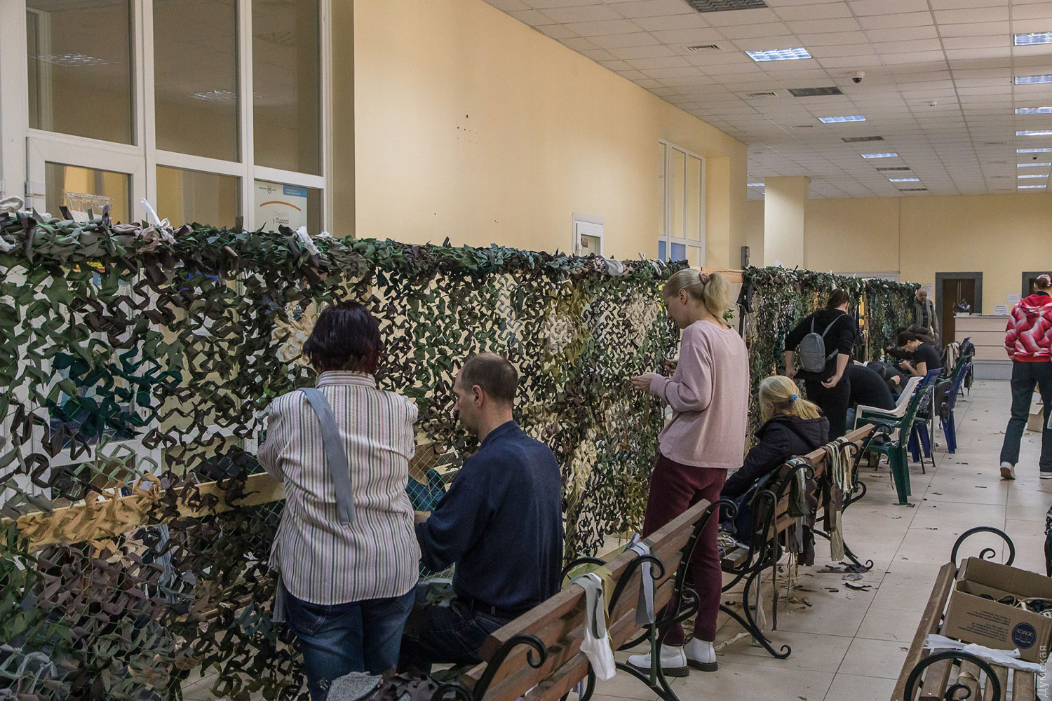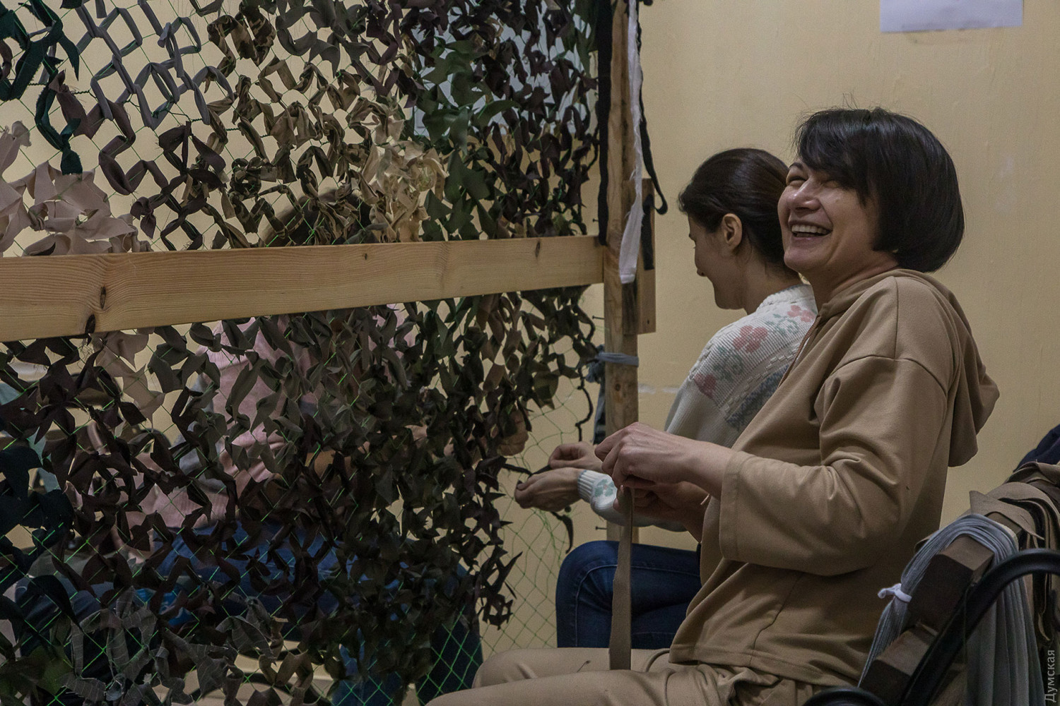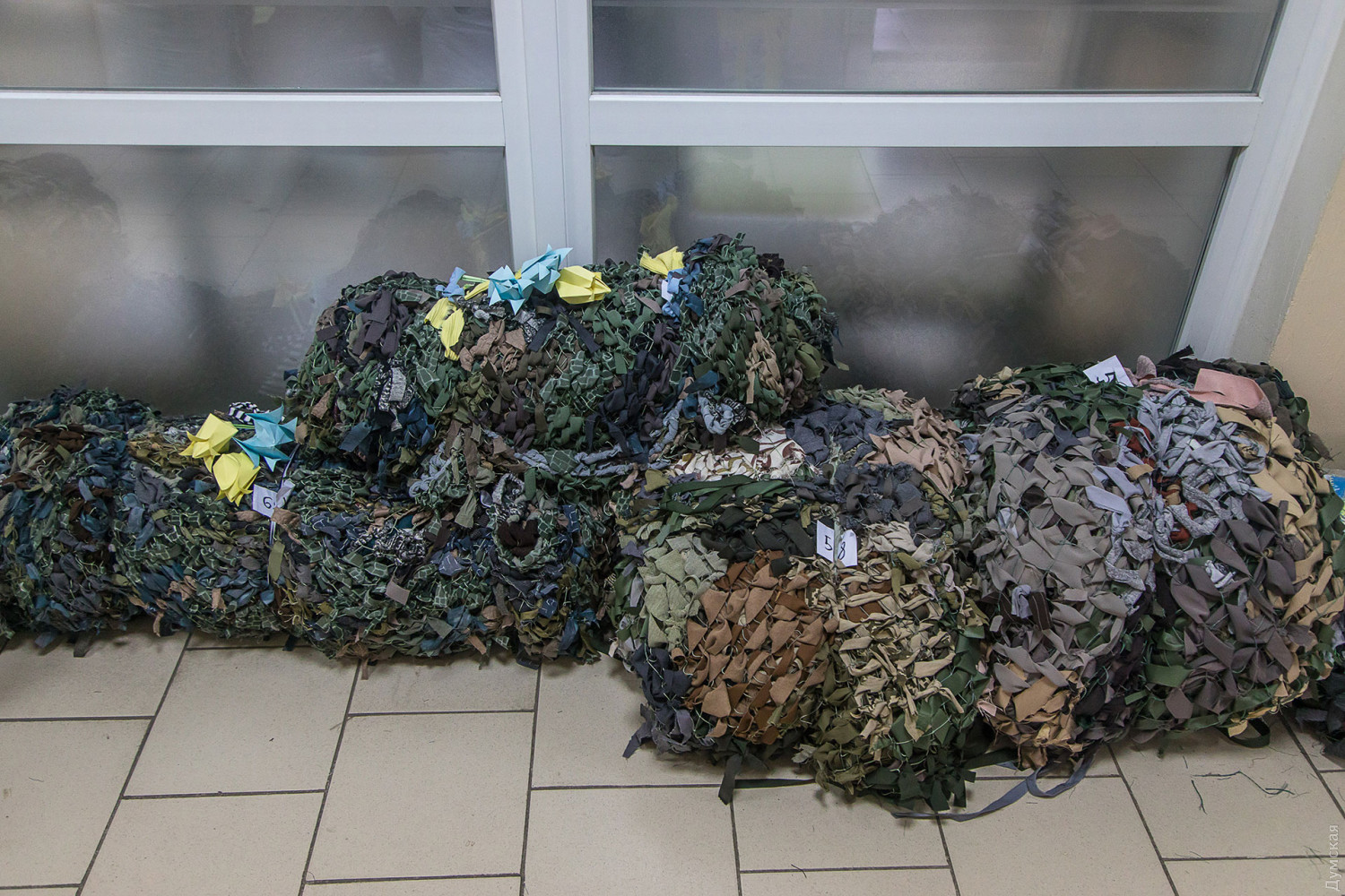 Волонтеры – фронту: как одесситы камуфляжные сетки для защитников Украины плетут«Думская» продолжает рассказывать нашим читателям об одесских волонтерах, которые с первых дней войны подставили свое плечо подразделениям территориальной обороны и Украинской Армии. Сегодня речь пойдет о волонтерском центре, расположенном в помещениях областного коммунального издательства «Черноморье» на площади Деревянко. Одним из направлений деятельности центра является производство камуфляжных сетей. Ежедневно больше 100 человек приходят в огромный холл типографии и выдают на-гора 200 погонных метров камуфляжной сетки. «На первом этаже мы делаем маскировочные сети, на втором – турникеты, есть производство карематов, — рассказывает один из организаторов волонтерского центра, депутат городского совета от партии «Европейская солидарность» Алексей Потапский. — Издательство «Черноморье» очень сильно помогает в плане площадей – здесь у нас склады по гуманитарке. Любой желающий может приходить и помогать армии. Кто-то приходит на час, кто-то на два, кто-то на целый день. Мы организовываем горячее питание для волонтеров. Я считаю, что это очень важно — когда люди заняты делом. Они отвлекаются от тяжелых мыслей, могут общаться и поддерживать друг друга». Работа есть для всех: кто-то сортирует ткань, которую с избытком приносят одесситы, кто-то разрезает ее на лоскуты, кто-то вплетает серо-зеленые ленты в сети. Плечом к плечу работают совершенно разные люди. Анатолию уже 82 года, но ловкости пальцев могут позавидовать и более молодые соратники. Мужчина приходит сюда каждый день с начала войны и пропустил всего пару выходных – когда нужно было съездить на дачу, чтобы проведать огород. «Процесс не сложный, да у меня и практика большая, — рассказывает одессит. – Я на даче виноград подвязываю, помидоры. Практика большая. Хочется участвовать и помогать нашей армии, нашим защитникам. Может, какой-то парень спрячется под этой сеткой и останется живым». Наталья приходит сюда после обеда, так как в первой половине дня у ее сына дистанционные занятия в школе. «А что я еще могу сделать? — отвечает Наталья на наш вопрос и причинах, побудивших ее к волонтерской деятельности. — Кровь я сдала, деньги на армию перевела, больше ничем помочь не могу. Если бы у меня ребенка маленького не было, пошла бы воевать». Отметим, что волонтерский центр сумел организовать не только плетение, но и производство основы для сетей, которую ранее закупали в Харькове. Как рассказал «Думской» соорганизатор волонтерского центра, депутат городского совета Олег Звягин, на собранные средства была закуплена и передана на производство специальная нить, которая не дает отражения и плохо регистрируется вражескими дронами. «Сырья хватит для производства почти 1,5 квадратных километров сетей, — говорит Олег. — Они крайне необходимы, так как маскируют наши войска. Мы будем передавать их различным подразделениям территориальной обороны через наши ячейки в районных центрах, а также через всеукраинскую сеть Гончаренко-центров». Деятельность волонтерского центра не ограничивается плетением сетей. Ежедневно отсюда выезжает несколько тонн гуманитарной помощи и снаряжения, необходимого для доукомплектации военнослужащих. «С начала войны сконцентрировались на гуманитарных грузах, которые 