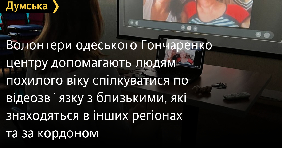 Волонтери Гончаренко центру в Одесі облаштували кімнату, де люди похилого віку або ті, у кого немає смартфона, можуть зв'язатися за допомогою відеозв'язку з близькими, які знаходяться в інших регіонах України або за кордоном.