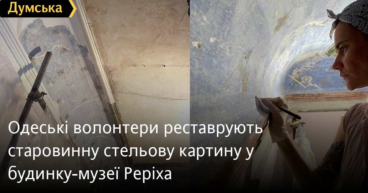 Потолочную падугу с картиной Гольдштейна восстанавливают в подъезде дома-музея Николая Рериха на Большой Арнаутской, 47.