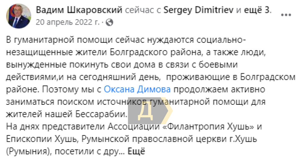 У політиці ця пані з'явилася 2020 року, обравшись до облради від проросійської ОПЗЖ, а точніше, від крила «скориківців» (прихильників нардепа Миколи Скорика. — Ред.), яких у зборах очолює одіозний заступник Діденка Вадим Шкарівський — відомий антисеміт і поціновувач росії. Якщо переглянути профіль Дімової у «Фейсбуці», то ви там не знайдете її особистих постів і думок, натомість фоток зі Шкароівським і його згадок — хоч відбавляй.