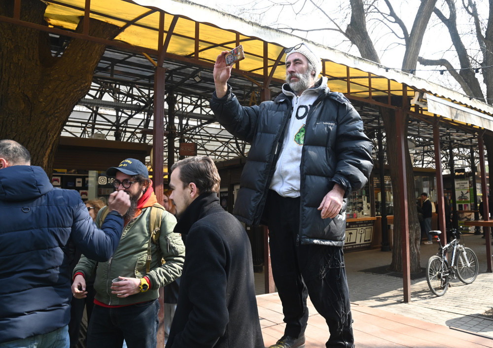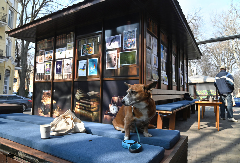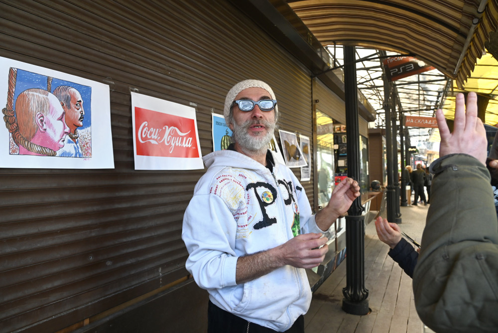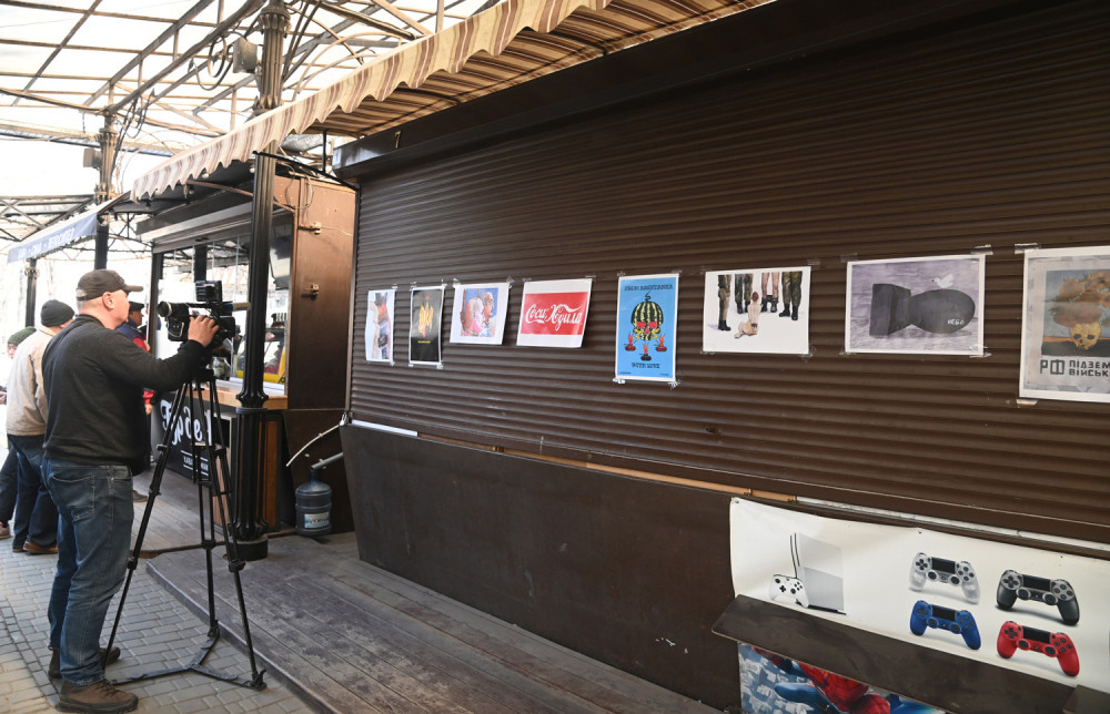 Одесский художник и дизайнер Владимир Уманенко открыл на книжном рынке, что на Александровском бульваре, выставку плакатов «на злобу дня».
