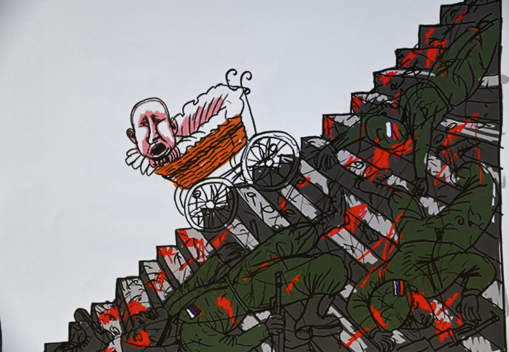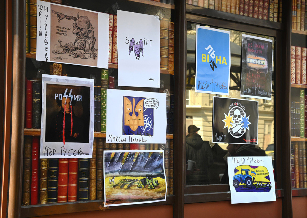 Украинские художники Лина Чантурия, Арсен Савадов, Юрий Больса, КindеrАlbuм, Денис Недолуженко, Владимир Уманенко, Никита Титов, Леся Верба, Максим Паленко, Юрий Журавель, Игорь Гусев отразили в плакатах все свои (впрочем, общие для всех украинцев) переживания за последний месяц.