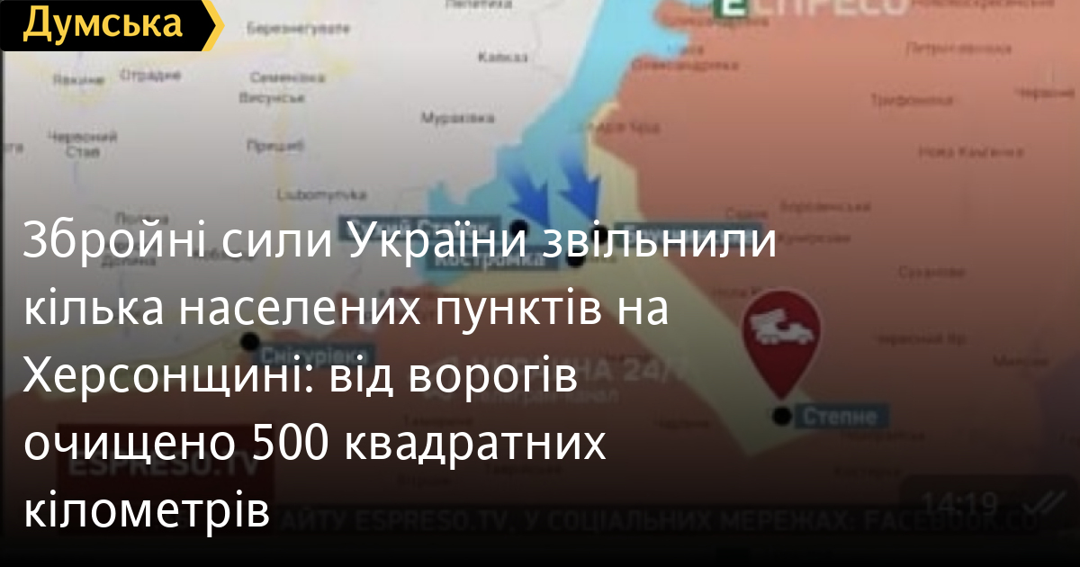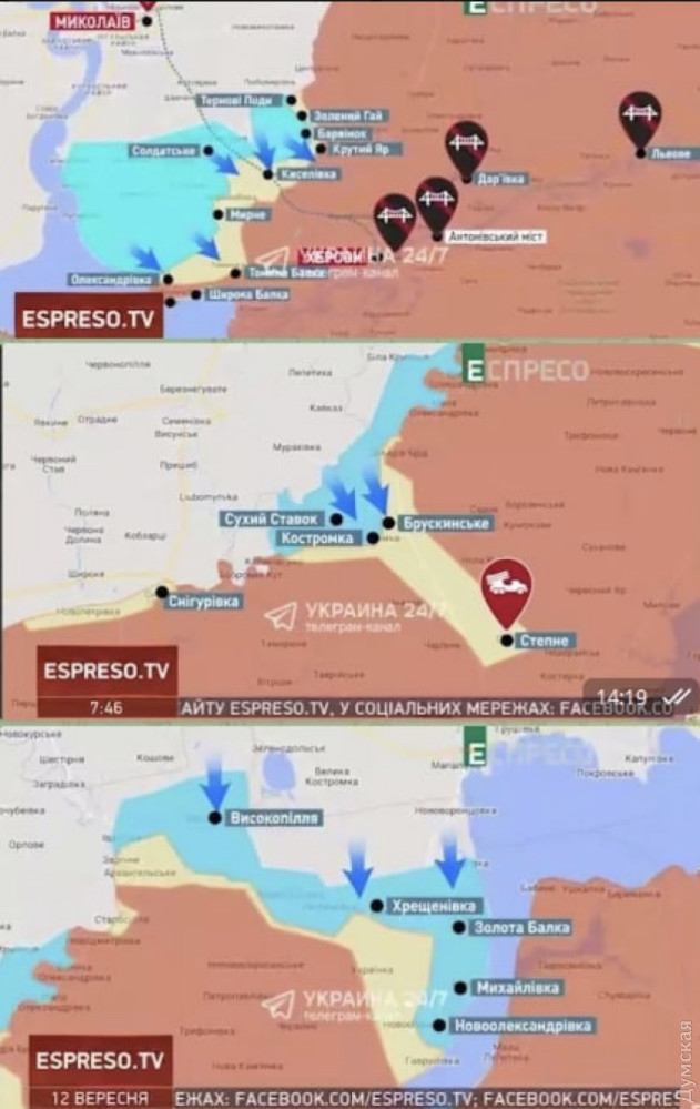 За словами керівника об'єднаного координаційного пресцентру Сил оборони півдня України Наталії Гуменюк, наші війська звільнили населені пункти Високопілля, Нововознесенське, Білогірка, Миролюбівка та Сухий Ставок.