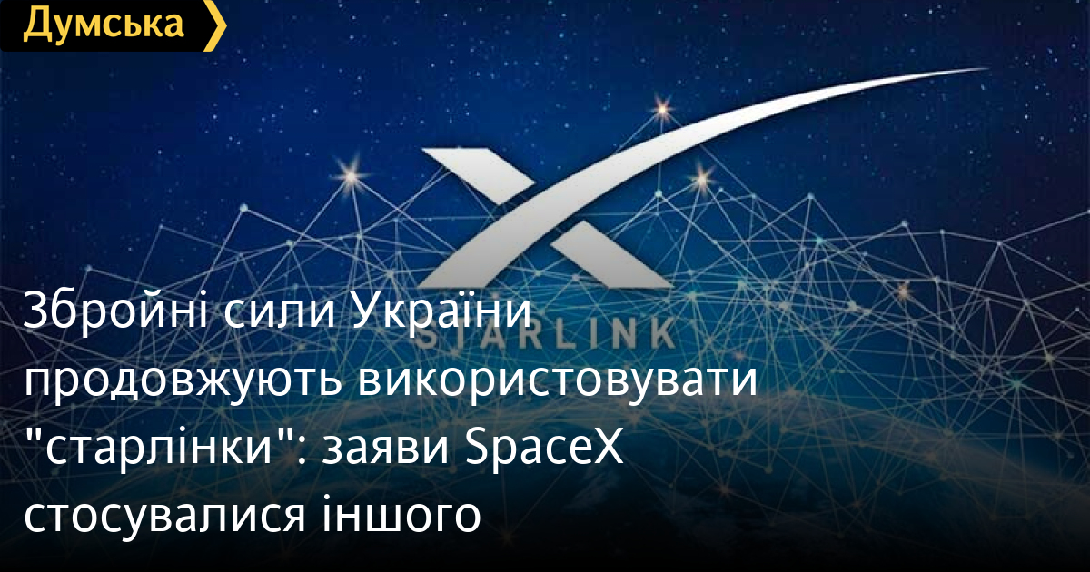 «Інтернет-сервіс SpaceX Starlink, який надав українським військовим широкосмуговий зв'язок для захисту від російських військових, ніколи не призначався для використання як зброя. Однак українці використовували його в такий спосіб, який був ненавмисним і не був частиною будь-якої угоди».