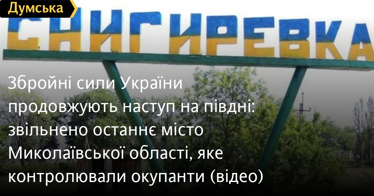 Останній великий населений пункт Миколаївської області, який залишався в руках окупантів — місто Снігурівку — звільнили сьогодні Сили оборони, які продовжують контрнаступ на півдні України.