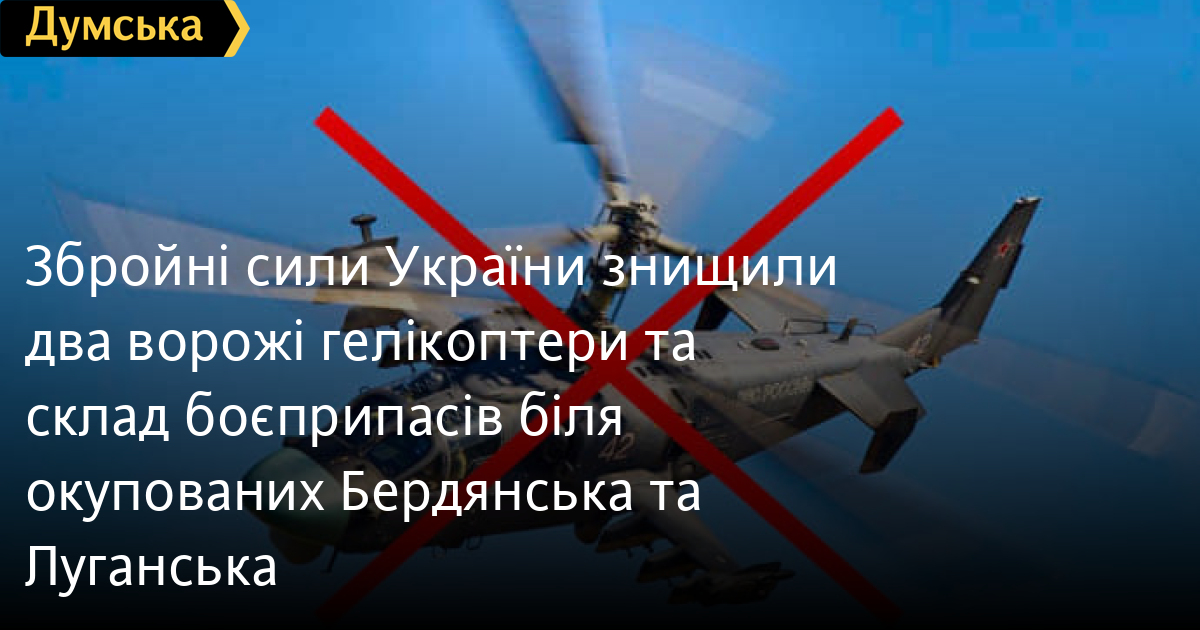 Успішних ударів по гелікоптерах та обладнанню аеродромів окупантів біля окупованих Луганська та Бердянська завдали вночі Збройні сили України.