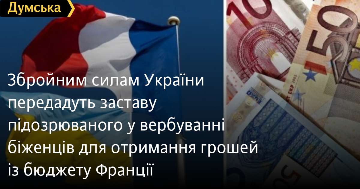 Збройним силам України передадуть заставу підозрюваного у вербуванні біженців для отримання грошей із бюджету ФранціїГрошову заставу в розмірі майже 700 тис. грн, внесену за підозрюваного у вербуванні громадян з метою залучення їх до злочинної діяльності на території Французької Республіки, передадуть Збройним силам України. Таке рішення ухвалив суд, який задовольнив клопотання Одеської обласної прокуратури, повідомили у відомстві. Гроші звернені у дохід держави через порушення фігурантом накладених на нього зобов'язань. Щодо чоловіка триває досудове розслідування за фактом вербування 40 громадян України та їхнього переміщення з України до Франції з метою отримання статусу біженця та відповідних виплат із бюджету іноземної держави. Дії громадянина кваліфікували за частиною 2 ст. 149 КК України (торгівля людьми). СМЕРТЬ РОСІЙСЬКИМ ОКУПАНТАМ! Помітили помилку? Виділяйте слова з помилкою та натискайте control-enter |
