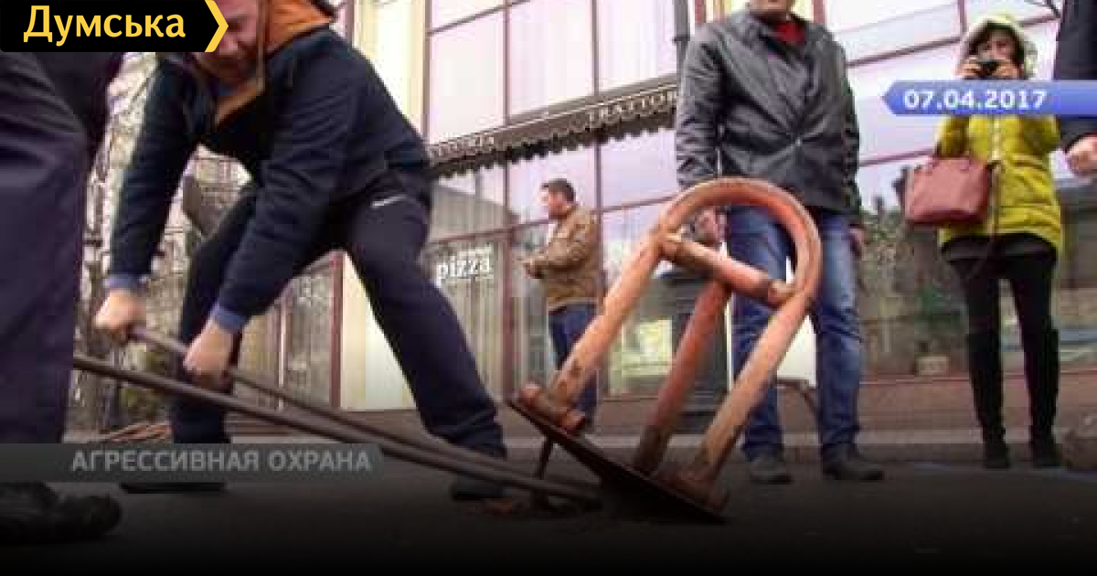 С агрессией к журналистам. Вопреки запрету на Греческой снова приваривают юнипаркеры.