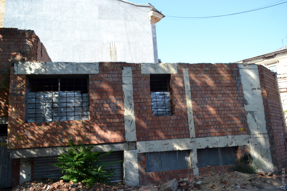 Что касается строительства у дома-стены, то после прошлогоднего погрома оно так и не возобновилось, и руины недостроя отпугивают туристов от некогда популярной одесской достопримечательности.