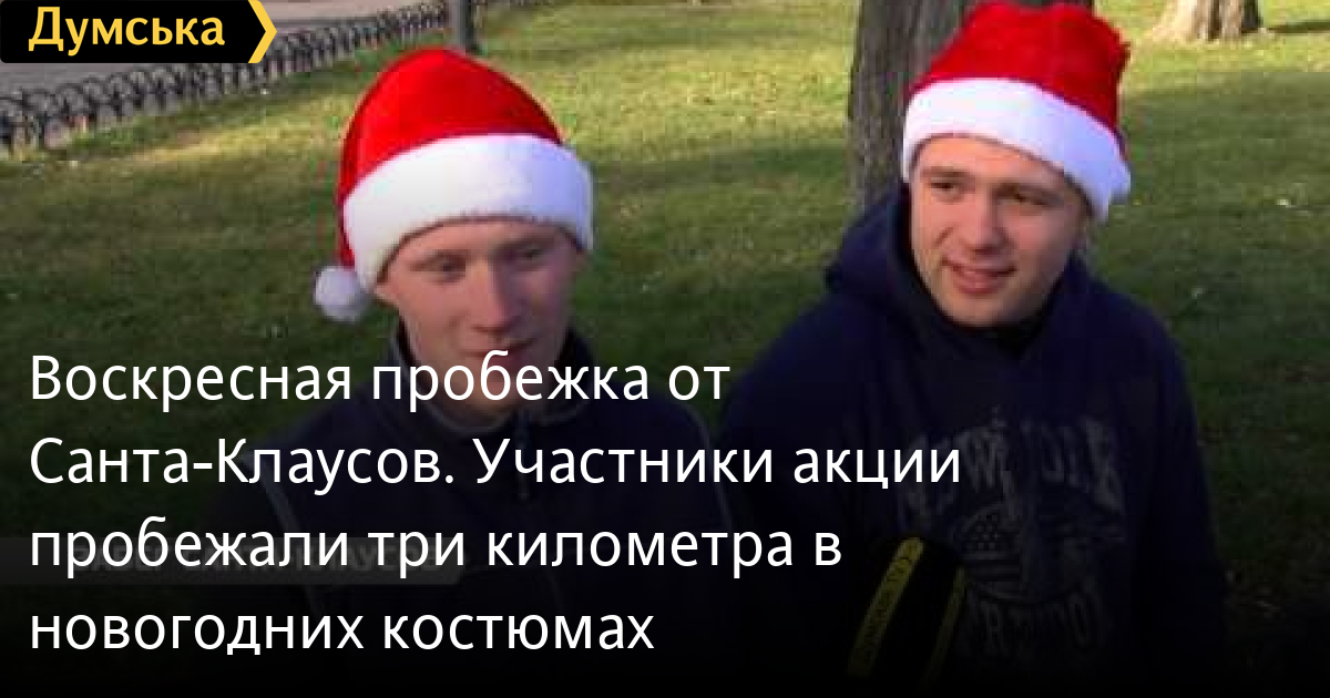 Воскресная пробежка от Санта-Клаусов. Участники акции пробежали три километра в новогодних костюмахВоскресная пробежка от Санта-Клаусов. Участники акции пробежали три километра в новогодних костюмах. Требования от организаторов: «шапка Санты на голове и маленькая вера в зимнее волшебство внутри». Как это было, видела Юлия Пробачай. СМЕРТЬ РОССИЙСКИМ ОККУПАНТАМ! Заметили ошибку? Выделяйте слова с ошибкой и нажимайте control-enter Думская ТВ. Сюжеты: