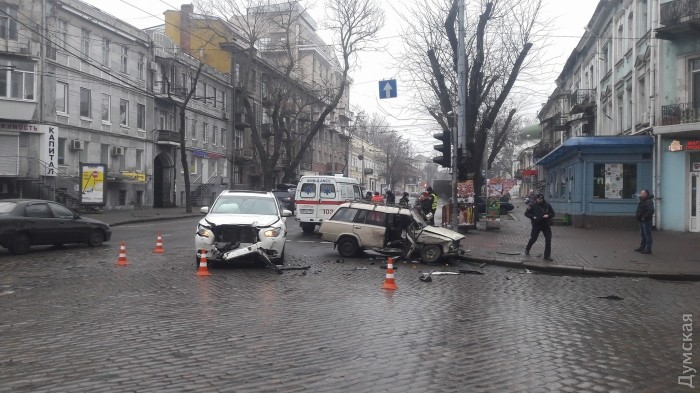 Сегодня около 10:00 на пересечении Пушкинской и Большой Арнаутской произошла авария: перекресток не поделили «ВАЗ 2102» и «Тойота».