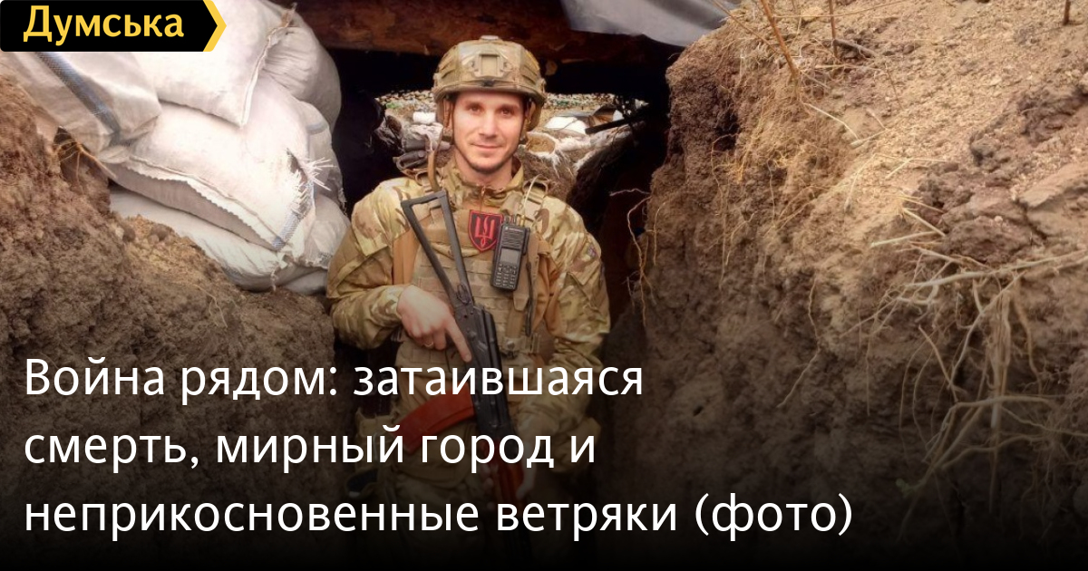 «Это ахметовская ветряная электростанция. Пока здесь, в Широкине, шли бои, всегда нас начальство предупреждало: мол, не дай бог вам попасть в такую вертушку. Сразу головы полетят. Посмотри – ни одна «мельница» не повреждена. Сепарам, видимо, тоже запретили их на металл пилить. Кому война, а кому – мать родна…» — горько признается на прощание офицер со смешной наклейкой на шлеме.