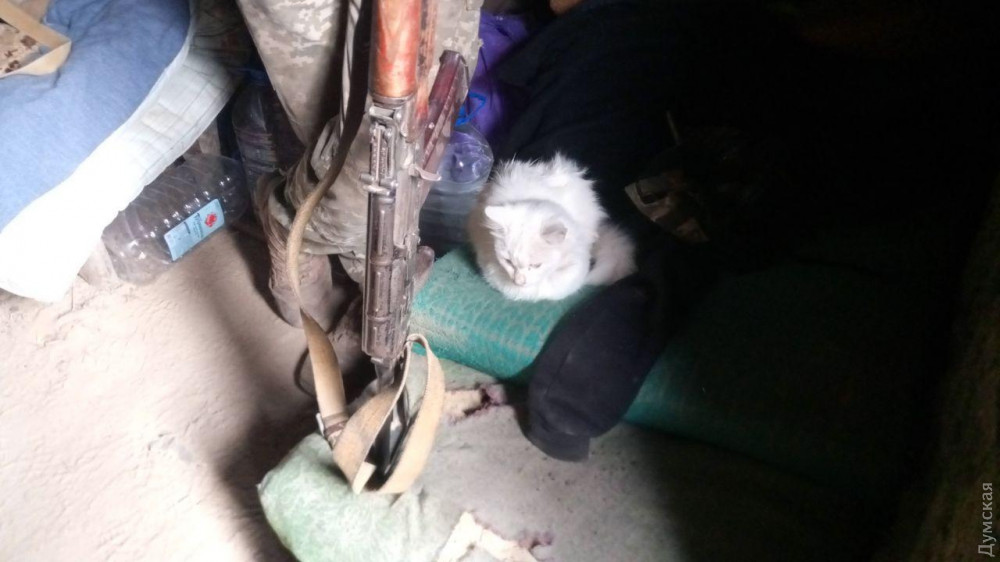 «Кот с позывным Детонатор, когда здесь «шумели» на передке, всегда за несколько минут показывал команду «Воздух» — реагировал на скорый прилет мин, прятался под лавку. Мы всегда знали – если Детонатор прячется, значит, скоро прилетит нам «подарочек». Кот сберег много жизней», — говорит матрос Николай.