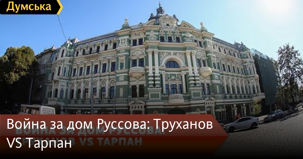 Мэр Одессы Геннадий Труханов и бизнесмен Руслан Тарпан обвинили друг друга в рейдерском захвате дома Руссова. Оба считают здание, которое недавно было частично отреставрировано за счет городского бюджета, своим.