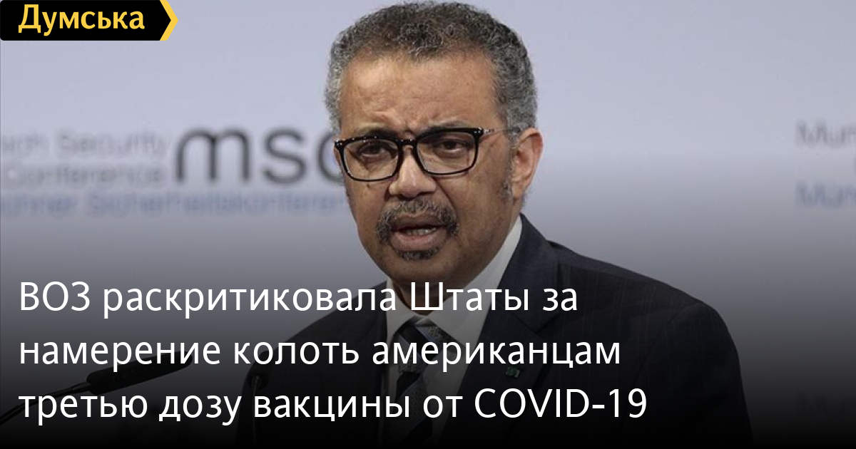 ВОЗ раскритиковала Штаты за намерение колоть американцам третью дозу вакцины от COVID-19Всемирная организация здравоохранения жестко раскритиковала намерение США делать американцам третью прививки от коронавируса спустя восемь месяцев после того, как люди прошли полный курс вакцинации. Об этом пишет The Guardian. В ходе брифинга глава ВОЗ Тедрос Адханом Гебрейесус назвал такое решение несправедливым и призвал ко «временному мораторию» на ревакцинацию во всем мире, поскольку страны с низким уровнем дохода привили «едва ли 2%« своего населения. «Это позор для всего человечества. Если мы не будем бороться с коронавирусом вместе, мы продлим острую стадию этой пандемии на годы, хотя она может закончиться за считанные месяцы», — уверен глава ВОЗ. По его словам, 75% всех сделанных в мире прививок от коронавируса приходятся всего на десять стран. В ответ на это в администрации президента США Джо Байдена заявили, что власть привержена как к защите американцев, так и к распространению вакцин по всему миру. Там считают, что нет необходимости выбирать между Америкой и миром. СМЕРТЬ РОССИЙСКИМ ОККУПАНТАМ! Заметили ошибку? Выделяйте слова с ошибкой и нажимайте control-enter Новости по этой теме: 4 марта 2023: "Вакцини-довгожителі", або Як щеплення проти COVID-19 перетворилися в Україні на небезпечний ритуал 27 января 2023: МОЗ обязали опубликовать договоры на закупку вакцин против COVID-19: апелляционный суд удовлетворил иск журналиста "Думской" 11 января 2023: За неделю в Одессе зафиксировано 159 случаев ковида 4 января 2023: За неделю в Одессе зарегистрировано 113 случаев ковида |