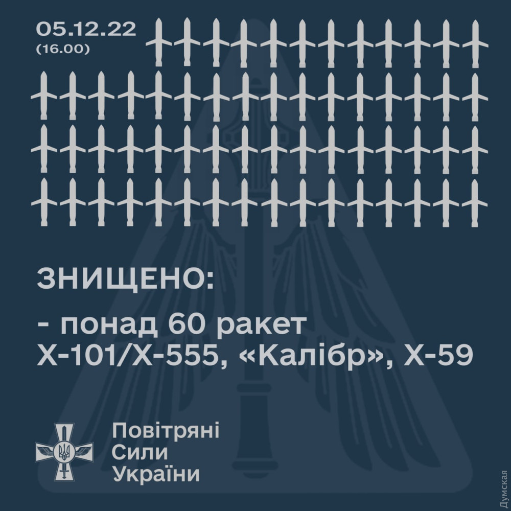 Також противник завдав удару 22-ма крилатими ракетами типу «Калібр» із кораблів Чорноморського флоту.