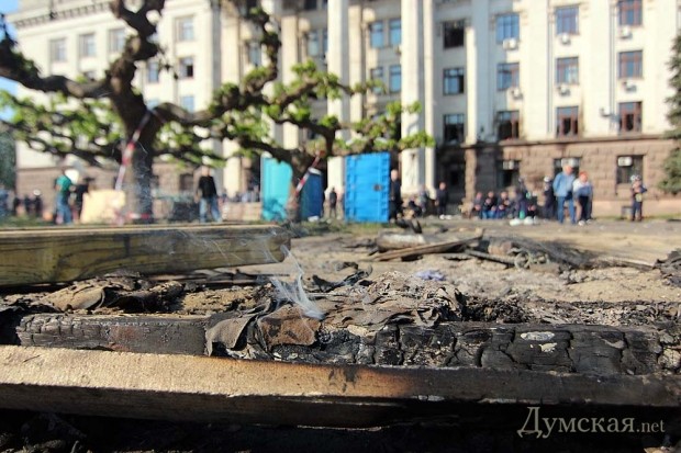 Некоторые одесситы оставляют у крыльца здания и посреди Куликова поля цветы, зажигают свечи. Близлежащие заведения работают в штатном режиме, разве что закрылся на неопределенный период «Макдональдс» на Привокзальной.