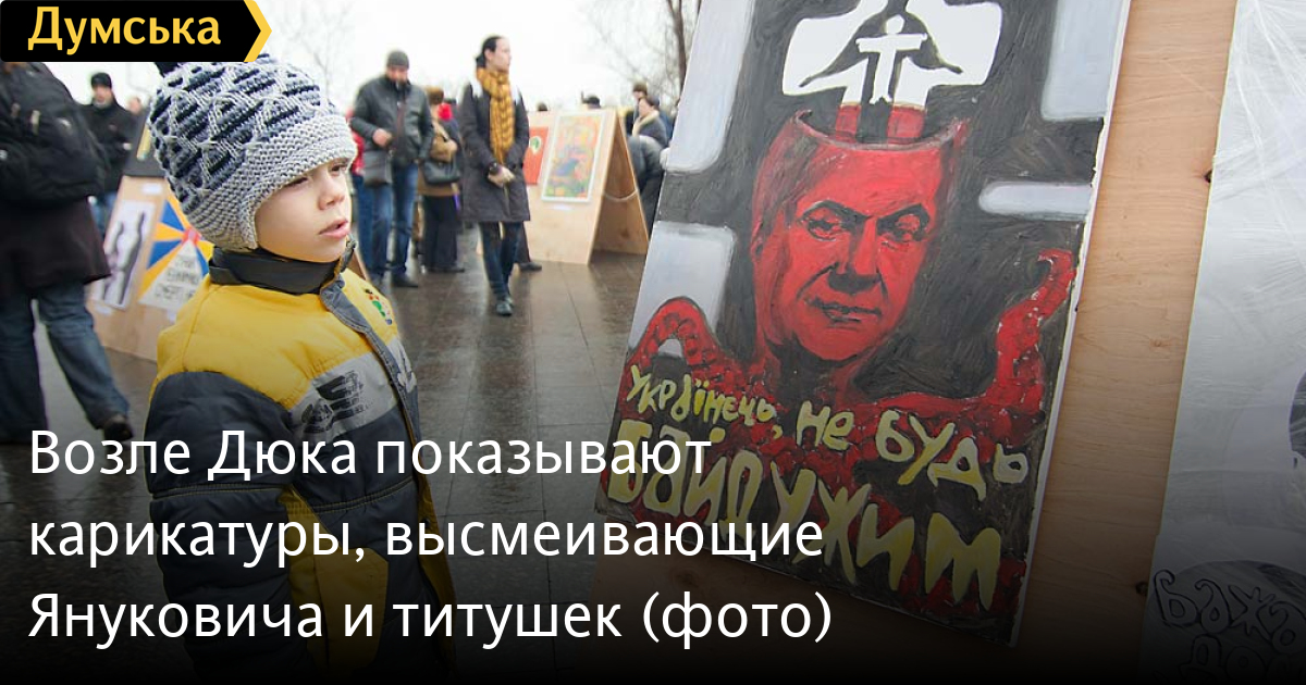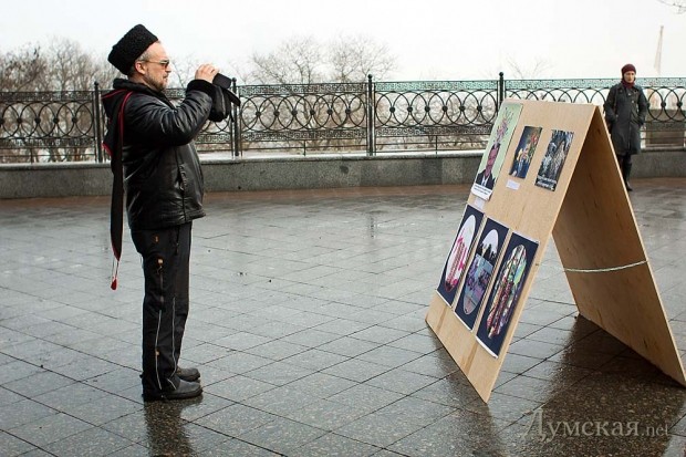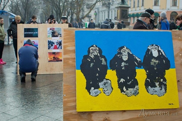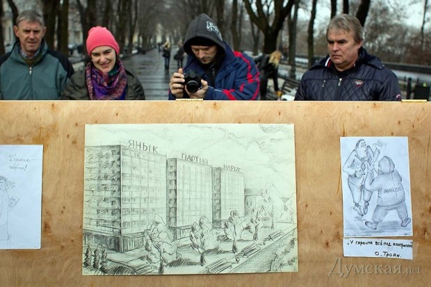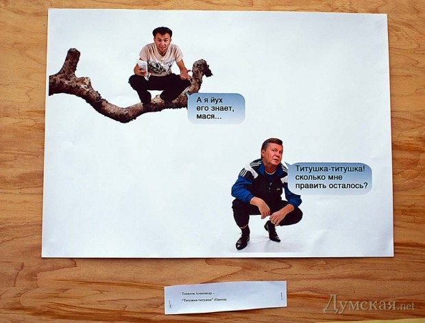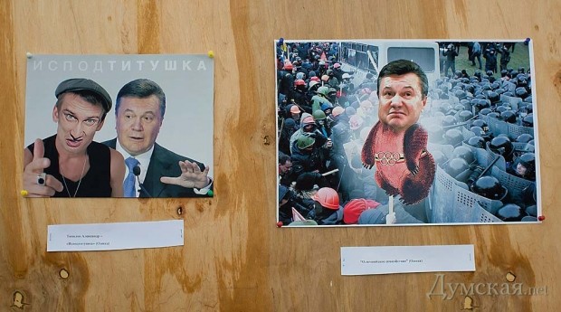 Сегодня на Приморском бульваре Одессы открылась выставка народного творчества в виде карикатур и фотоколлажей, объектом которой выступил Президент Украины Виктор Янукович и так называемые «титушки».
