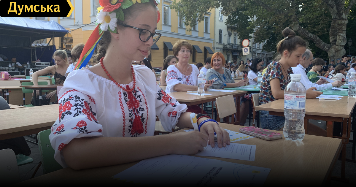 Массовый диктант писали сегодня возле памятника Дюку. Мероприятие проходит уже четвертый год подряд в рамках «Вышиванкового фестиваля». Свои знания проверяли почти 300 человек. Это были люди разных возрастов и профессий — врачи, журналисты, учителя, школьники, юристы, госслужащие. Перед началом диктанта все участники вместе с координатором фестиваля Олесей Русиновой спели гимн Украины. Текст диктанта создан на основе одной из статей украинского писателя Любко Дереша, который и провел диктант под названием «Якими нам бути». «Для меня это радостное событие, возможность разделить со многими людьми увлечение украинским языком», — сказал писатель. По словам писателя, текст диктанта не должен вызвать трудности, поскольку он среднего уровня сложности. «Чтобы удачно написать диктант, нужно внимательно слушать интонации и полагаться на свое чувство языка»,- советует Любко Дереш. За партами корреспондент «Думской» заметила совсем юных участников и даже представителей школы боевого гопака, которые демонстрировали свое искусство перед началом диктанта. Одним из участников массового диктанта оказался главный специалист по коммуникации Одесского теруправления НАБУ Ростислав Дробожур. «Я сейчас в отпуске и мне просто интересно получить такой новый опыт. Еще в школе я писал диктанты достаточно успешно, и мне это нравилось. Но с тех пор я не обновлял знания украинского языка. Я приятно удивлен таким количеством людей, желающих принять участие. Тем более в воскресенье, когда многие вместо отдыха на море, взяли в руки листики и ручки, чтобы написать диктант. Приятно быть частью этой чудесной акции», -отметил Ростислав. Также впервые после окончания школы пришла написать диктант журналистка Ольга Дунская. «Захотел написать мой парень, а я сначала сомневалась — очень неловко и стыдно будет, если вдруг совсем плохо его сдам. Но все-таки подумала, что надо пойти проверить свои силы. И для моей профессии это полезно», — говорит журналистка. В прошлом году диктант сдавали 300 человек, а в позапрошлом — 350. В этом году рекорд побить не удалось — зарегистрировались 293 участника. Самому младшему 9 лет, а старшему — 84. Авторы работ без ошибок получат призы от партнеров мероприятия. Результаты будут известны только завтра — учителя одесских школ должны проверить все работы и опубликовать результаты на сайте https://www.pidruchnyk.ua/ СМЕРТЬ РОСІЙСЬКИМ ОКУПАНТАМ! Помітили помилку? Виділяйте слова з помилкою та натискайте control-enter |