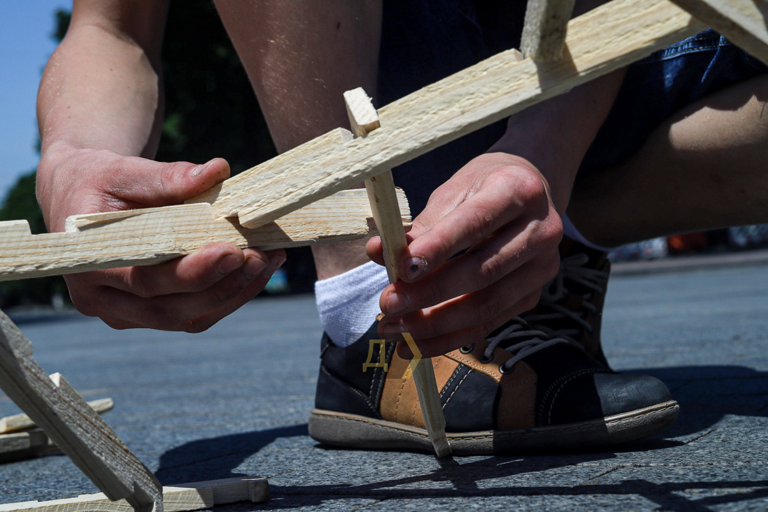 Возле Дюка школьники соревновались в строительстве куполов по методу Леонардо да ВинчиФинал школьного конкурса на возведение деревянных конструкций без использования каких-либо крепежей прошел сегодня днем на Приморском бульваре возле памятника Дюку. Соревнование проводилось с начала года среди учащихся 12 школ, расположенных в непосредственной близости от Днестровского лимана. «В течение года школьники тренировались строить из палочек для мороженого, — рассказал Сергей. — А сейчас у них есть возможность построить большие купола», — рассказал «Думской» организатор мероприятия — предприниматель Сергей Джамаль, который является почитателем итальянского гения Леонардо да Винчи. По словам Сергея, этот конструктор развивает пространственное мышление, а созданные по этому методу конструкции являются лучшим берегозащитным сооружением. Кроме того, они с успехом работают во всех Национальных парках Одесской области. Приехать в Одессу на финал смогли шестеро участников. Каждому выдали по 30 деревянных реек длиной 30 см со специальными пазами. Согласно правилам победителем признается тот, кто соберет наибольшее количество уникальных куполов. Надо отметить, что так называемый «мост Леонардо да Винчи», видоизмененный вариант которого, судя по всему, и пропагандирует Сергей Джамаль, не предполагает использования каких бы то ни было инструментов и никакой обработанной древесины и пазов. Фото — Александр Гиманов СМЕРТЬ РОССИЙСКИМ ОККУПАНТАМ! Заметили ошибку? Выделяйте слова с ошибкой и нажимайте control-enter |