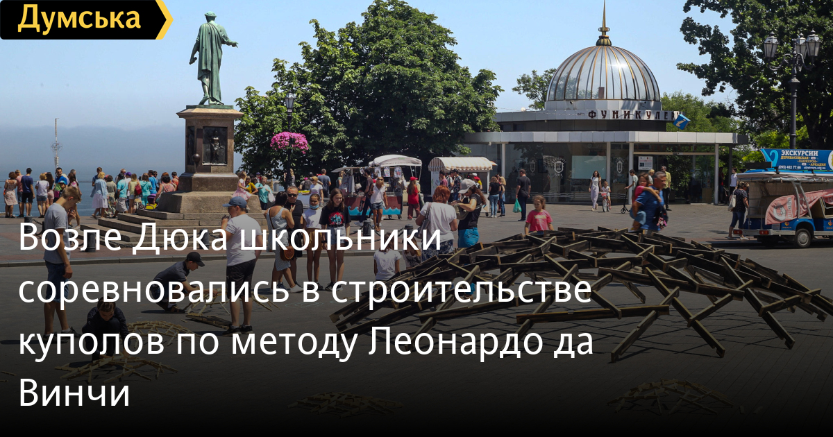 Возле Дюка школьники соревновались в строительстве куполов по методу Леонардо да ВинчиФинал школьного конкурса на возведение деревянных конструкций без использования каких-либо крепежей прошел сегодня днем на Приморском бульваре возле памятника Дюку. Соревнование проводилось с начала года среди учащихся 12 школ, расположенных в непосредственной близости от Днестровского лимана. «В течение года школьники тренировались строить из палочек для мороженого, — рассказал Сергей. — А сейчас у них есть возможность построить большие купола», — рассказал «Думской» организатор мероприятия — предприниматель Сергей Джамаль, который является почитателем итальянского гения Леонардо да Винчи. По словам Сергея, этот конструктор развивает пространственное мышление, а созданные по этому методу конструкции являются лучшим берегозащитным сооружением. Кроме того, они с успехом работают во всех Национальных парках Одесской области. Приехать в Одессу на финал смогли шестеро участников. Каждому выдали по 30 деревянных реек длиной 30 см со специальными пазами. Согласно правилам победителем признается тот, кто соберет наибольшее количество уникальных куполов. Надо отметить, что так называемый «мост Леонардо да Винчи», видоизмененный вариант которого, судя по всему, и пропагандирует Сергей Джамаль, не предполагает использования каких бы то ни было инструментов и никакой обработанной древесины и пазов. Фото — Александр Гиманов СМЕРТЬ РОСІЙСЬКИМ ОКУПАНТАМ! Помітили помилку? Виділяйте слова з помилкою та натискайте control-enter |