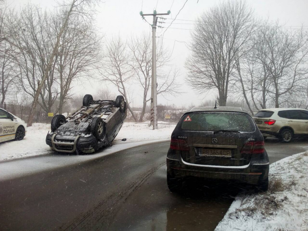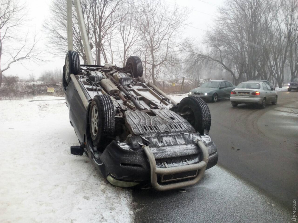 Автомобиль «Лексус» перевернулся в результате ДТП, которое произошло у дома №146 на улице Николая Троицкого — это район 411-й батареи.