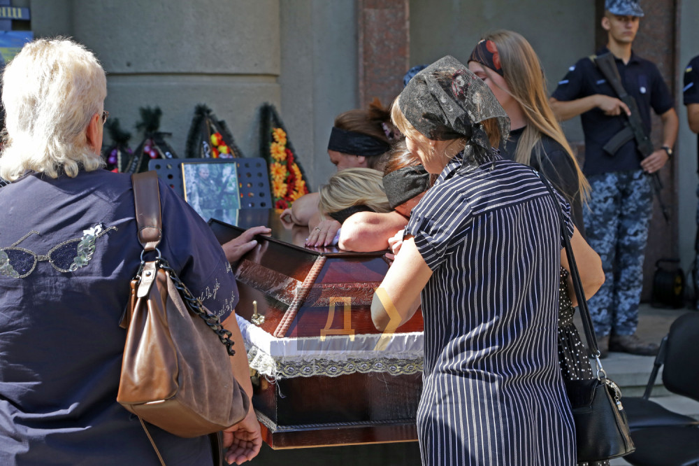 Після прощання із загиблими воїнами відбулася церемонія накриття труни державним прапором України.
