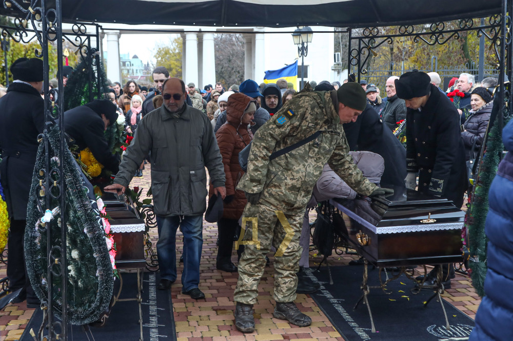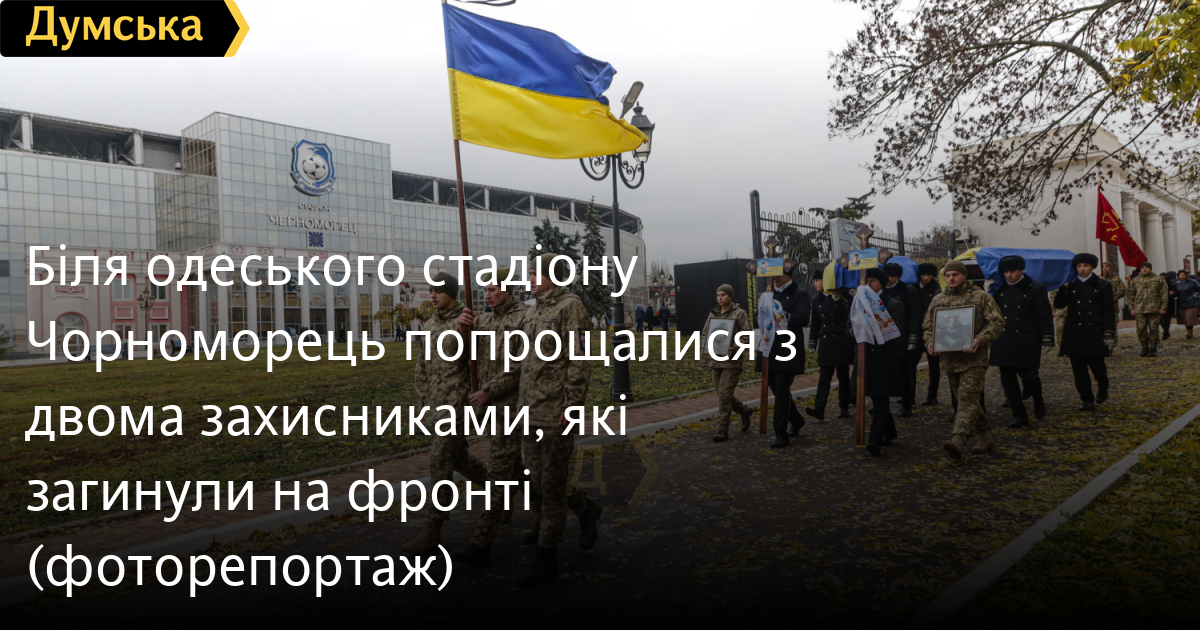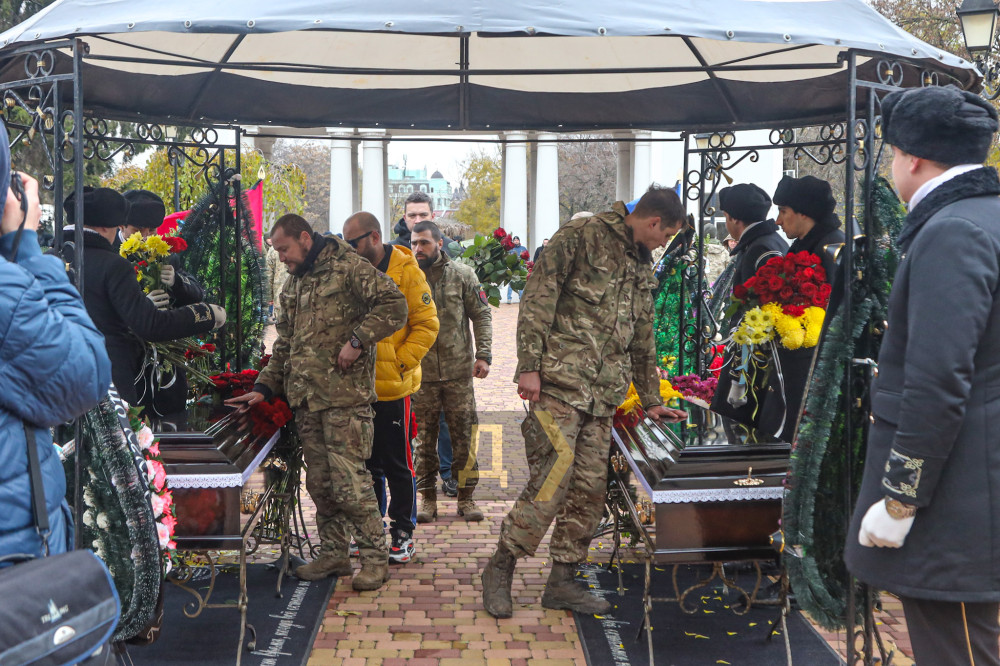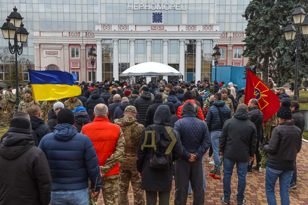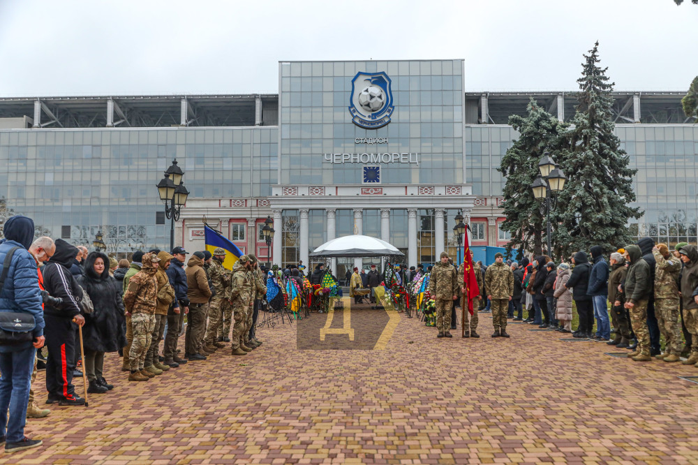 Попрощатися з героями прийшли рідні та близькі, а також фронтові побратими, представники «Чорноморця» та члени фанатського руху клубу.