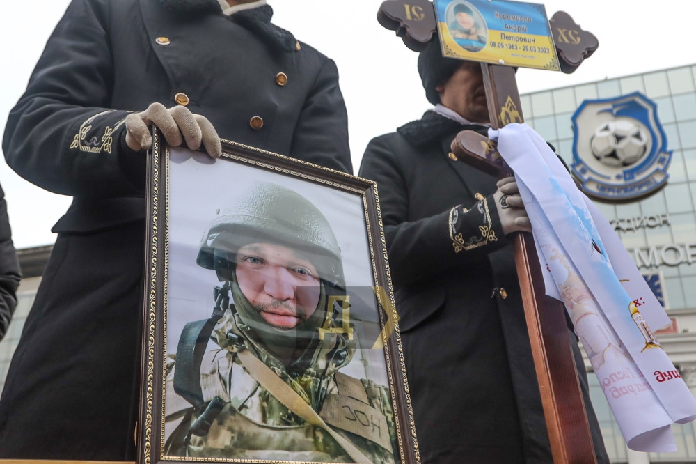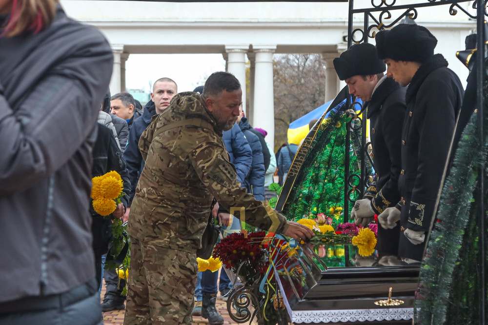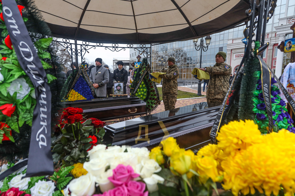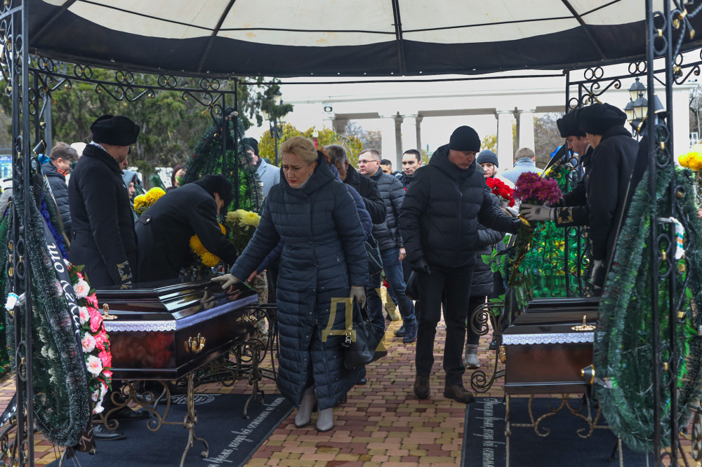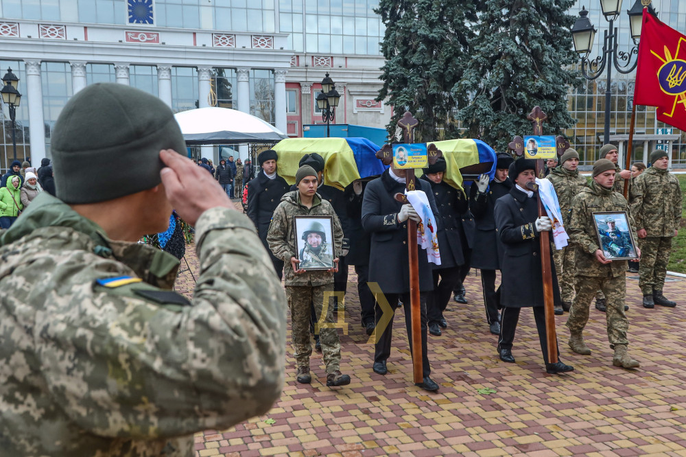 Попрощатися з героями прийшли рідні та близькі, а також фронтові побратими, представники «Чорноморця» та члени фанатського руху клубу.
