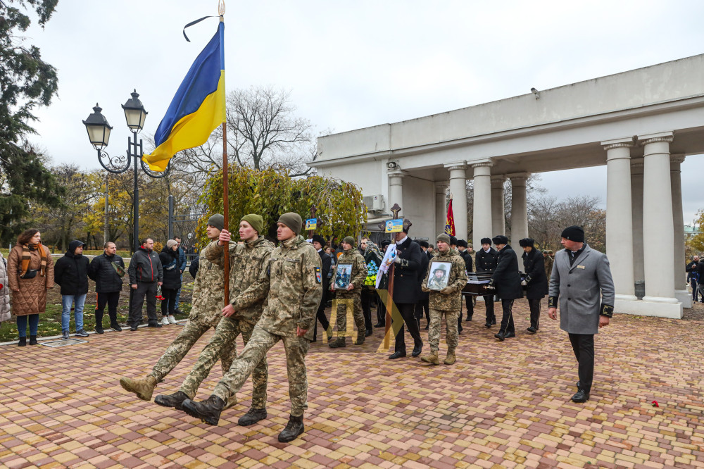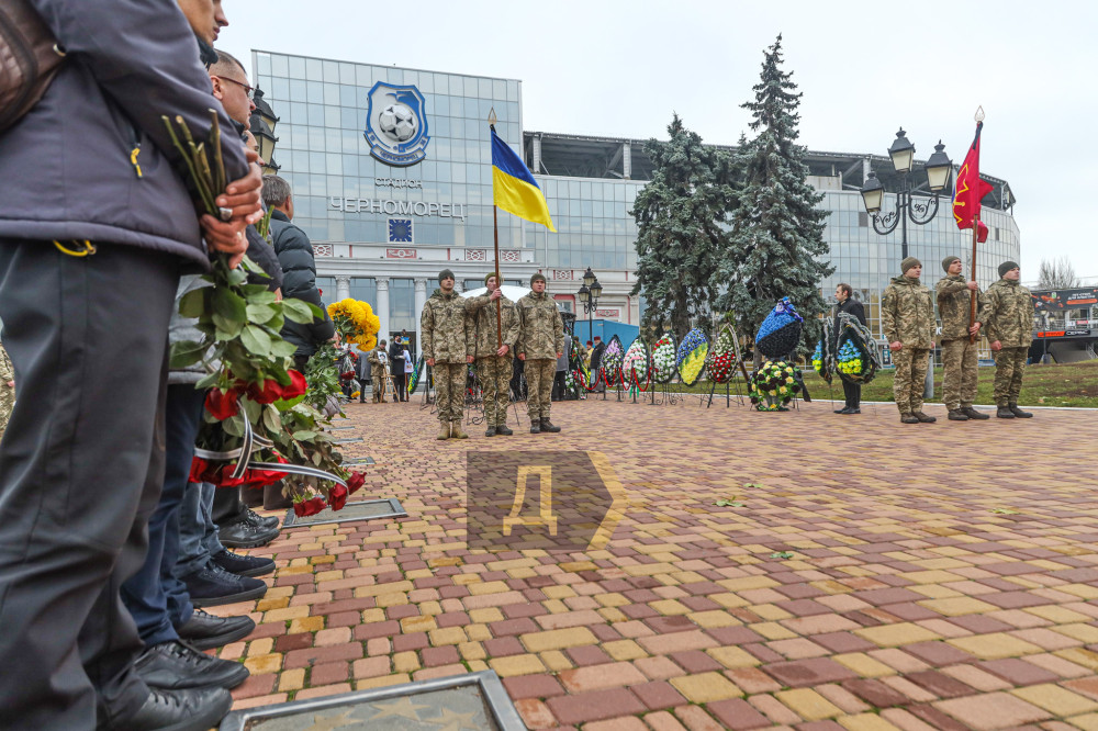 Прощання з героями, які загинули під час звільнення півдня України, відбулося сьогодні біля центрального входу на стадіон «Чорноморець» в Одесі.