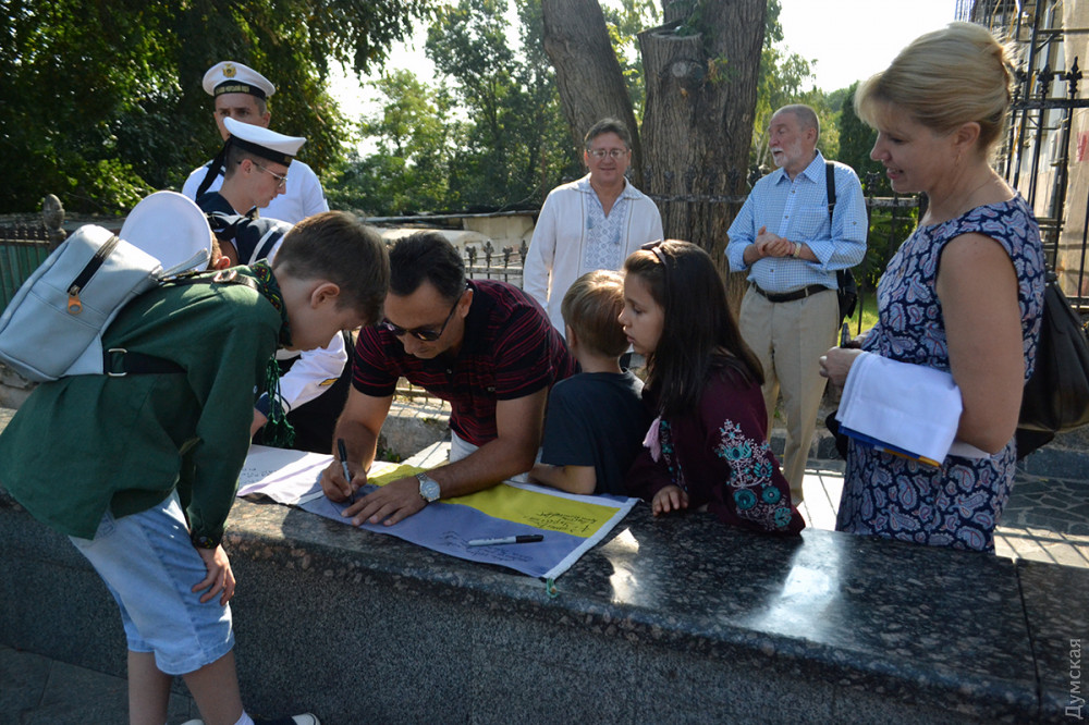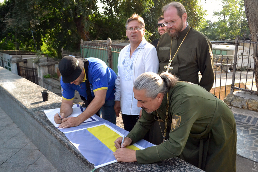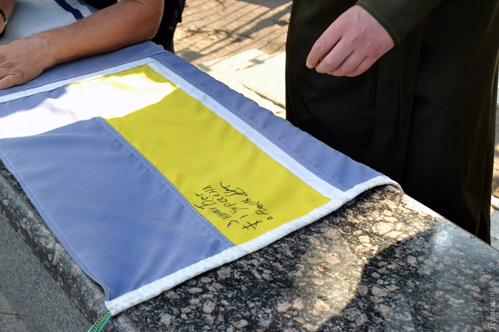 «Мы обещали, что этот флаг будет висеть здесь, пока парни не вернуться домой, и сегодня мы его снимаем, оставим свои пожелания морякам и как только они будут в Одессе, мы его им передадим, — пояснила волонтер. — Дальше флаг передадут в музей ВМС, где будут собраны флаги со всех городов, где их поднимали».