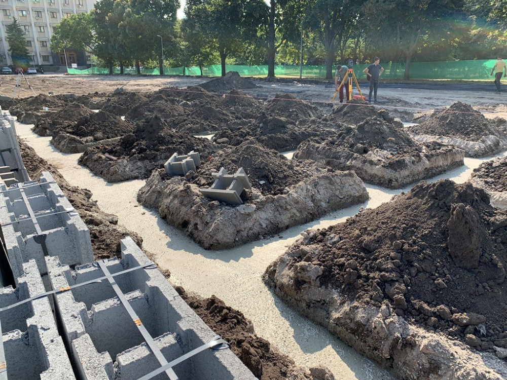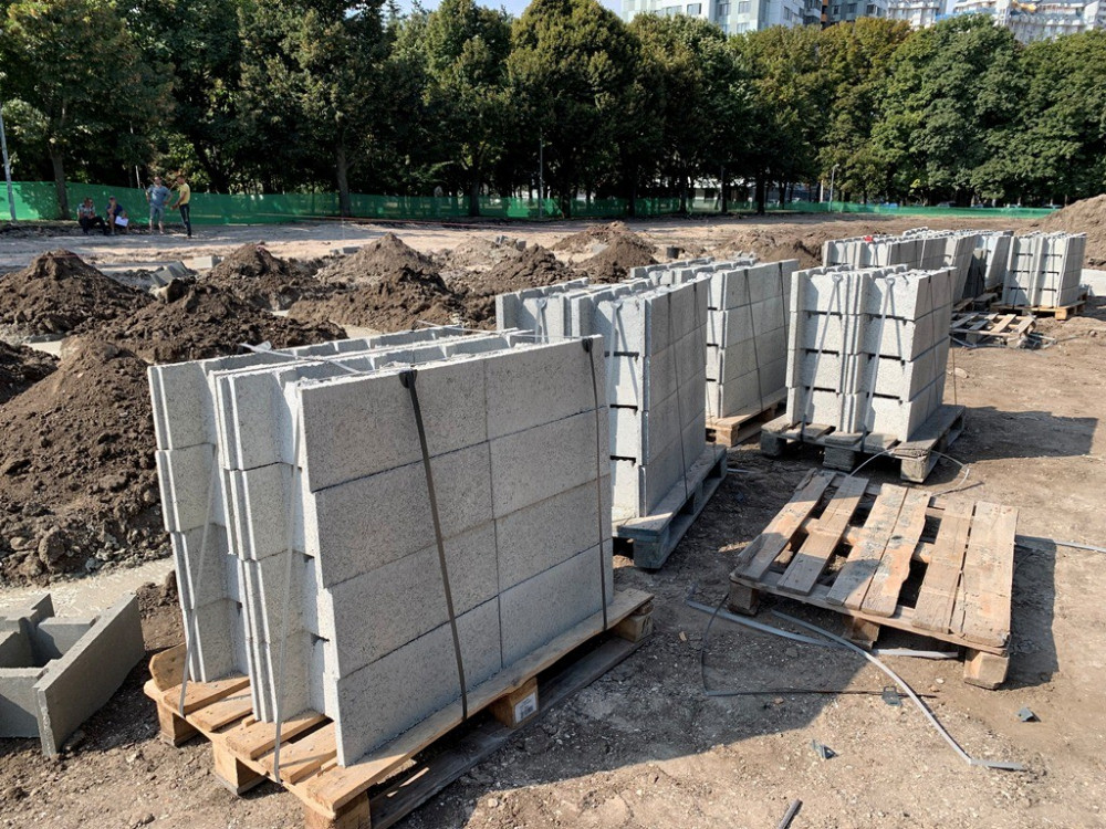 На сегодняшний день на территории сквера ведутся подготовительные работы: демонтаж старого покрытия, завоз на площадку необходимых строительных материалов, обозначение зоны будущего Мемориала воинам.