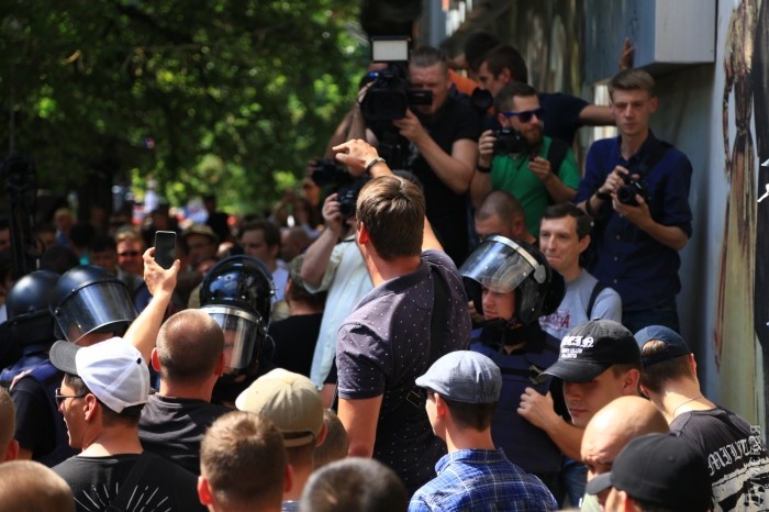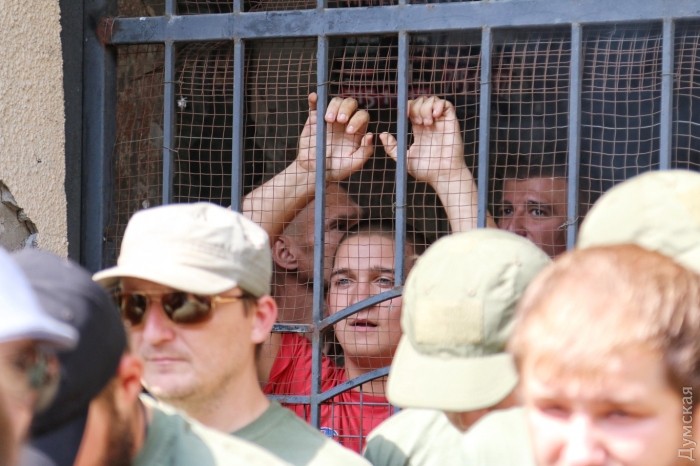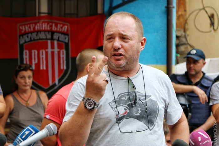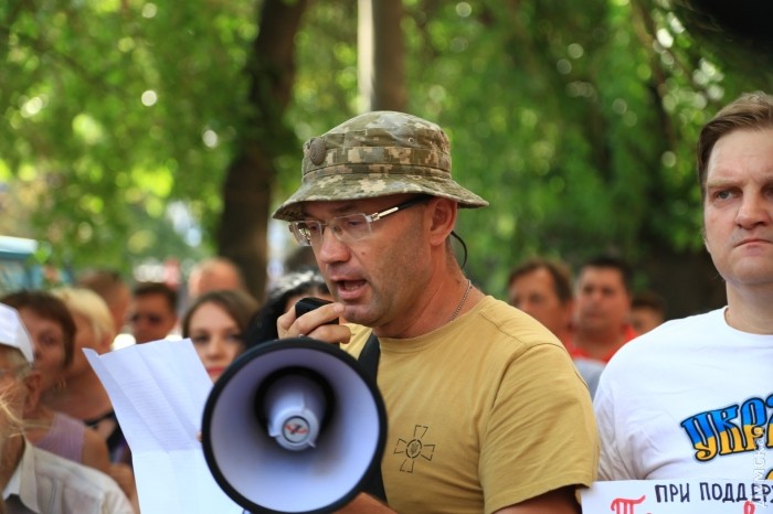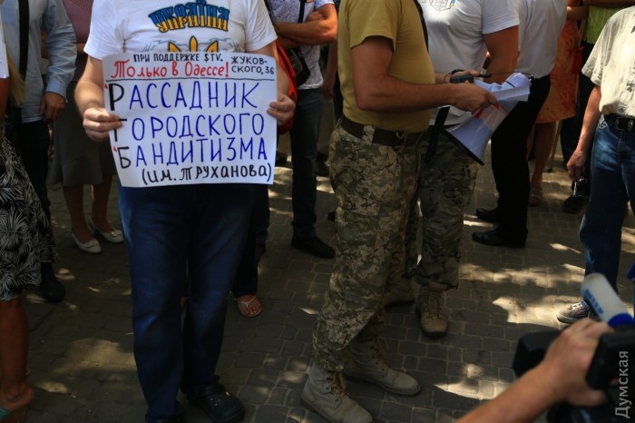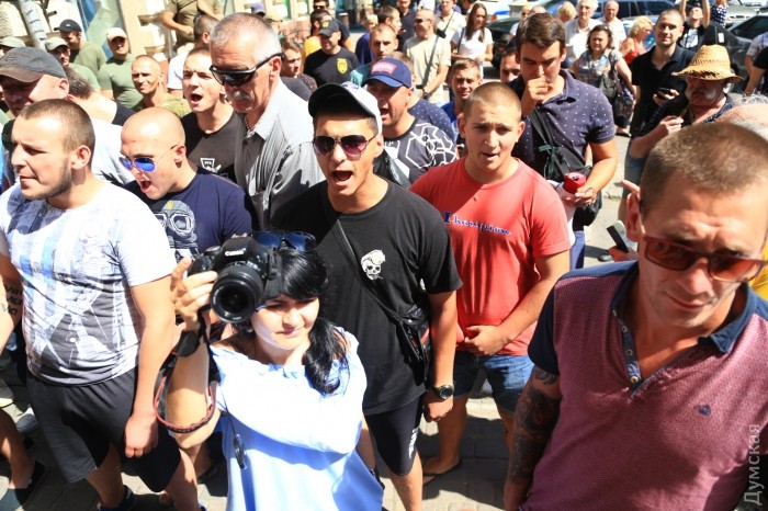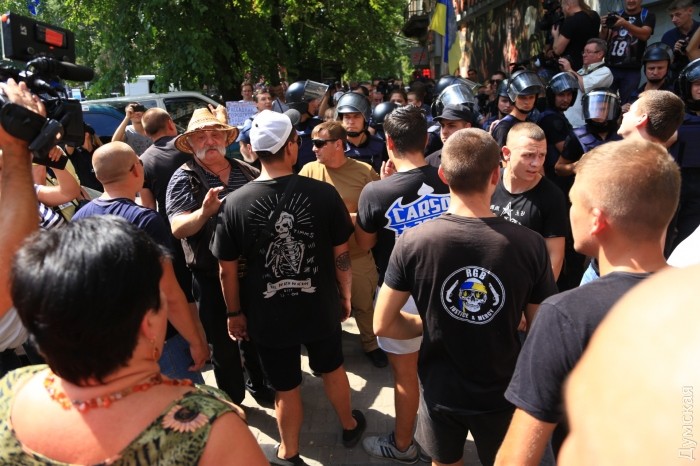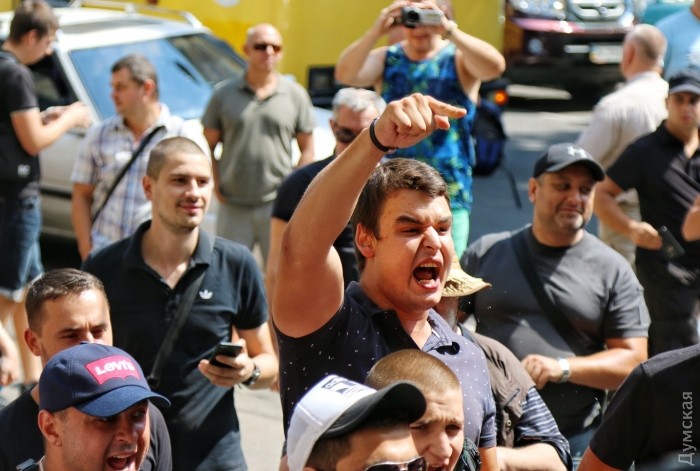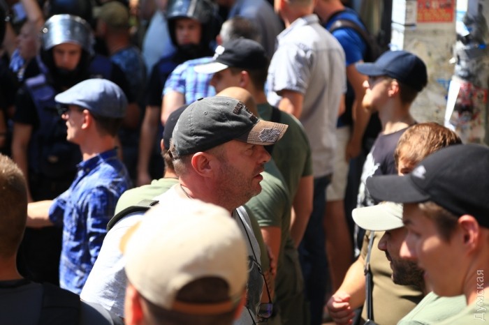 Как передает корреспондент «Думской», с обеих сторон, которые разделяет кордон сотрудников спецподразделения полиции, собралось примерно по 40 человек. Против Марка Гордиенко и его соратников выступает атаман «Черноморского гайдамацкого соединения» Сергей Гуцалюк, а также сторонники арестованного лидера организации «Украина — это мы» Виталия Голодка. Они обвиняют оппонентов в помощи сепаратистам, мошенничестве и бандитизме.